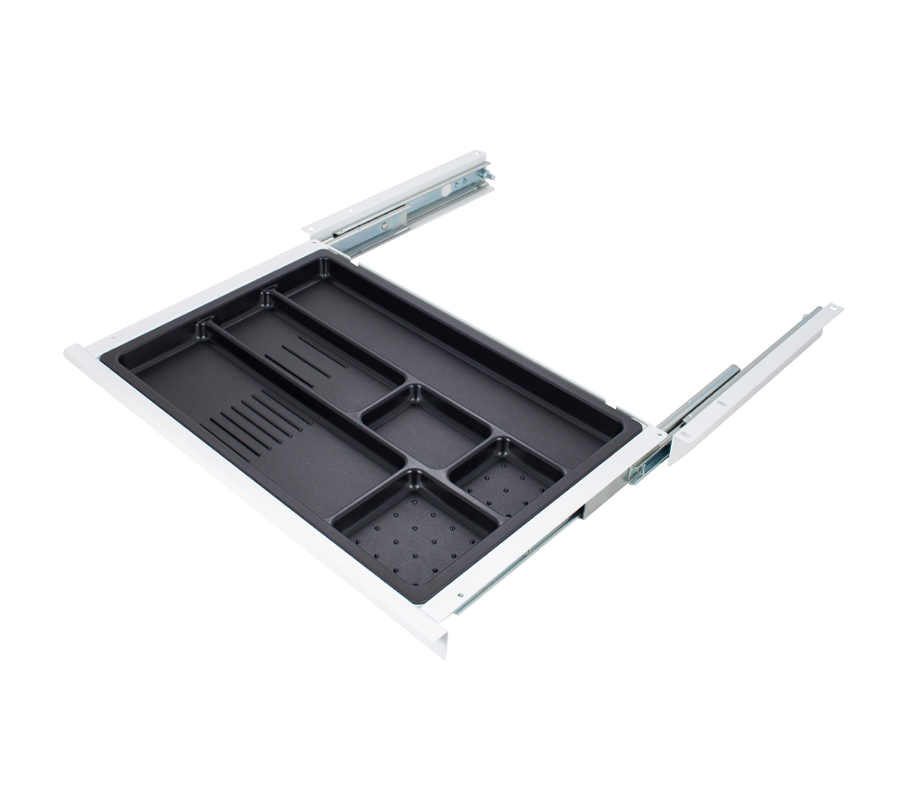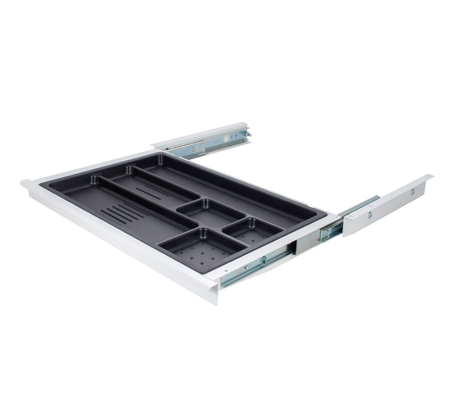 Ta praktyczna szuflada do przechowywania pozwala zwolnić miejsce do pracy, przenosząc akcesoria biurowe pod blat. Ergonomiczny design czyni ją praktycznie niezauważalną.