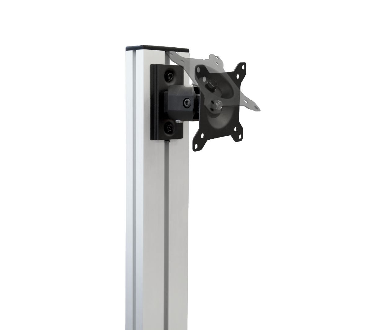 KFT 1601-N Silver – напольная мобильная стойка с креплением для мониторов 10 - 24". Высота регулируется: 1220–1520 мм от пола до верхней точки. Встроенный кабель-канал. Наклон: ±15°. Поворот: ±15°. Стандарт VESA 75х75, 100х100. Размеры полки: 500х430. размер полки под клавиатуру: 400х220. Максимальная нагрузка: 20 кг, 10 кг на VESA и 10 кг на полку.