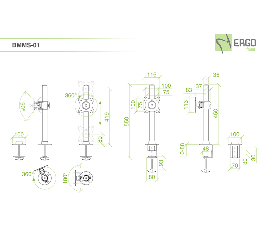 BMMS-01 is an ergonomic monitor mount allows to perfectly position your monitor. Built-in mechanisms allow to easily adjust monitor's position and change its height in range of 450 mm.