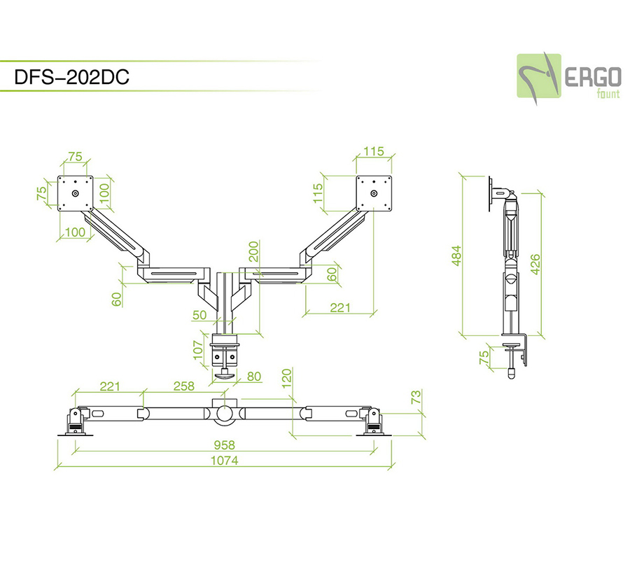 DFS-202DC mount will hold 2 monitrors with the weight of 8,5 kg and a diagonal of up to 24'' each. Its flexible mechanisms allow to perfectly adjust each monitor's position while cable channels will hide wires.