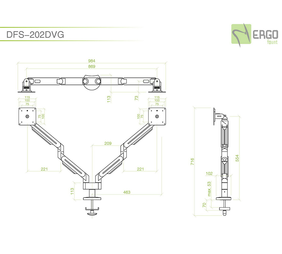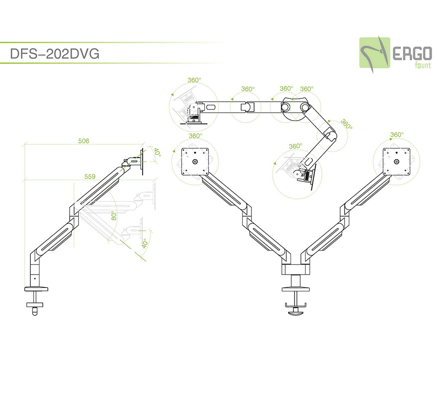 DFS-202DVG mount will hold 2 monitors with the weight of 8,5 kg and a diagonal of up to 24'' each. Its 2-stage arms allow to perfectly position each monitor while cable channels will hide wires.