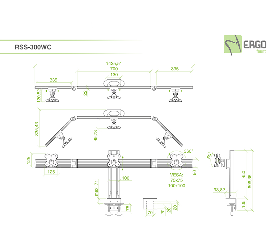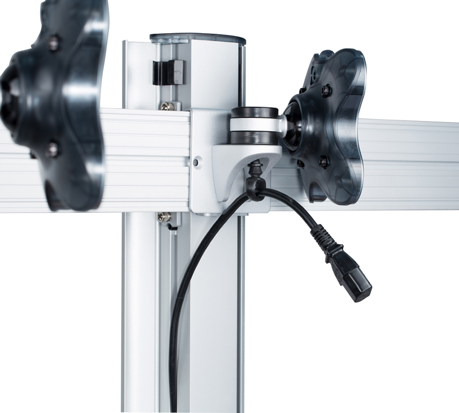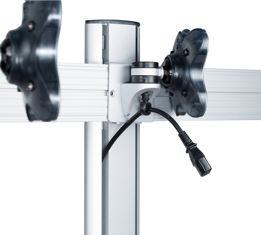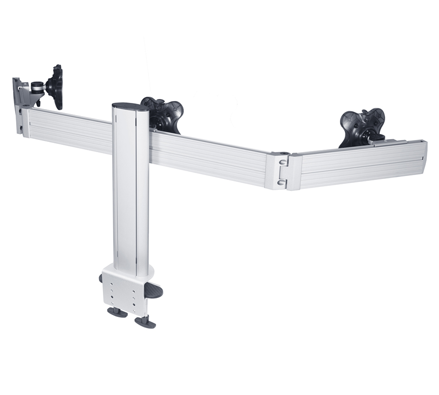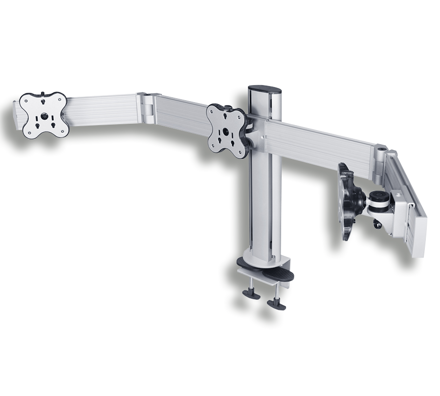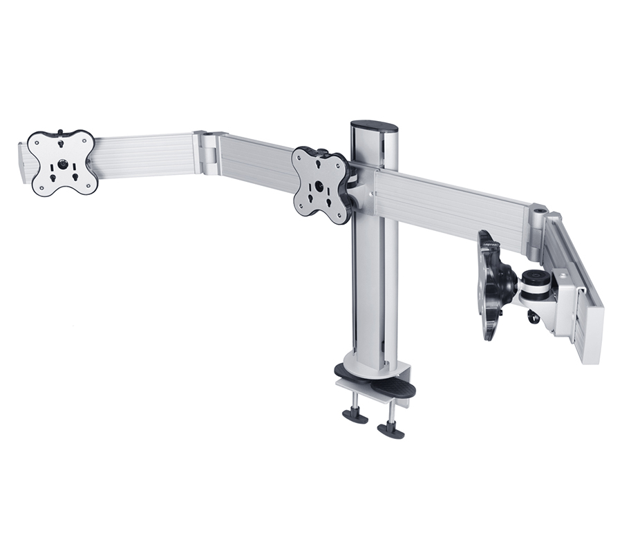 RSS-300WC tabletop mount will hold 3 monitors with the weight of up to 12 kg and a diagonal of up to 24'' at the same level. You can individualy adjust each side panel of the mount, creating the perfect view of several monitors.
