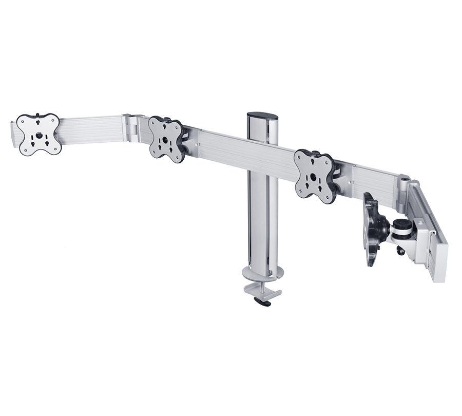 RSS-400WG tabletop mount will hold 4 monitors with the weight of up to 12 kg and a diagonal of up to 24'' at the same level. You can individualy adjust each side panel of the mount, creating the perfect view of several monitors.