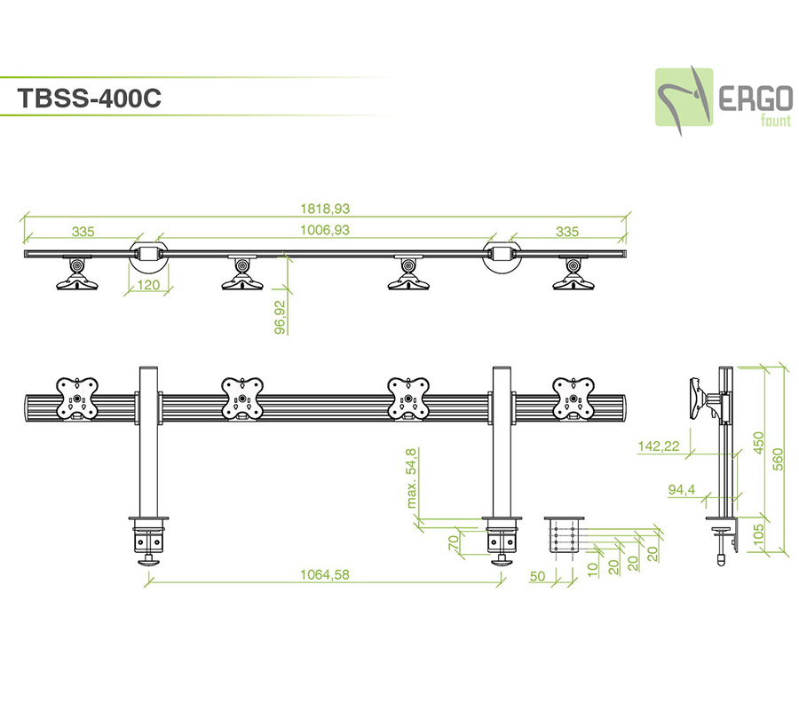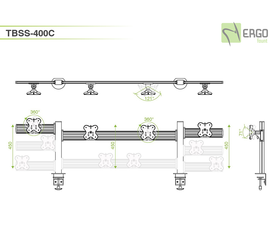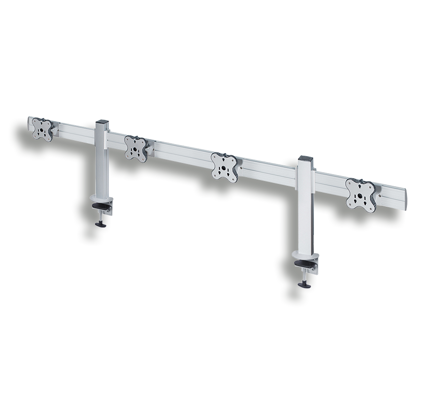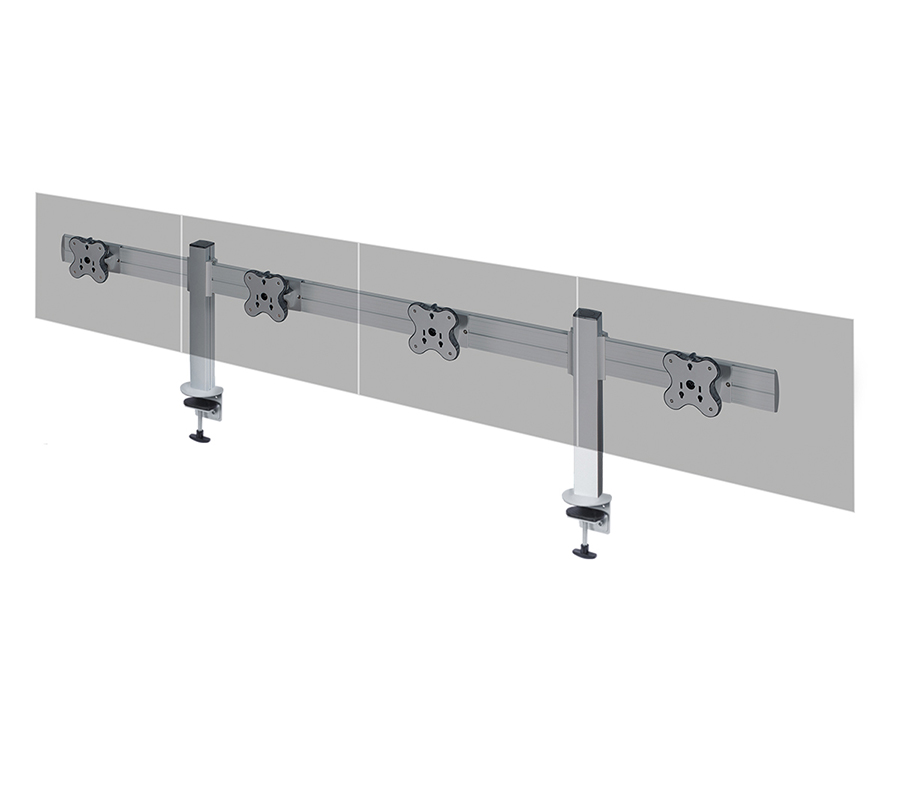TBSS-400C tabletop mount can hold 4 monitors with a weight of up to 12 kg and a diagonal of up to 24'' on an ergonomic toolbar. It allows to create a compact video wall right on your workdesk. You can adjust the position of each monitor and hide wires in built-in cable channel.