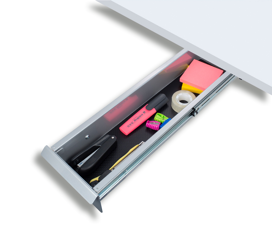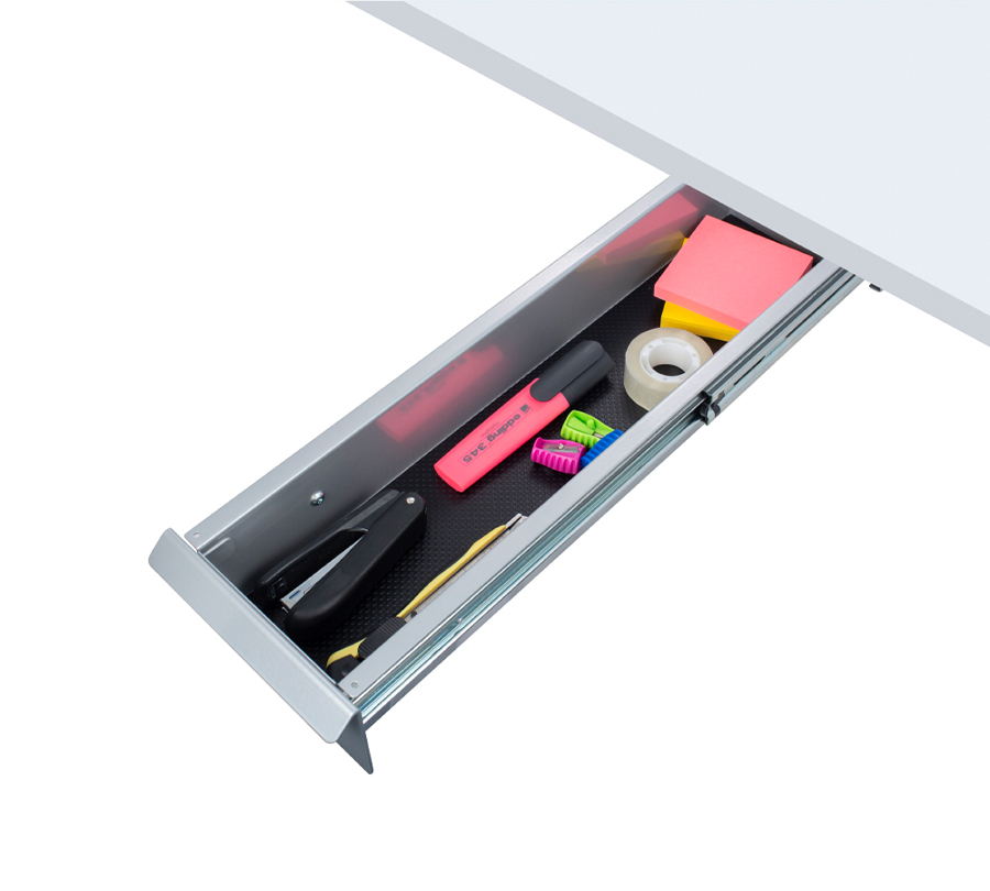 This practical storage drawer allows to free your workspace by moving office accessories under the desktop. Ergonomic design makes it almost unnoticeable.