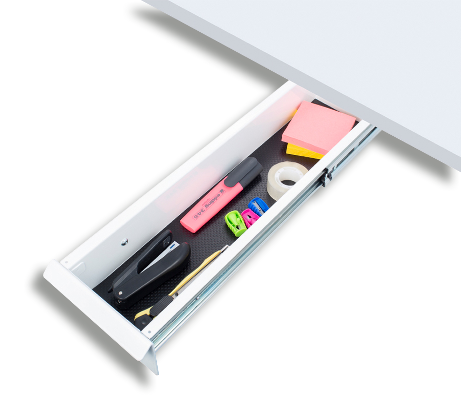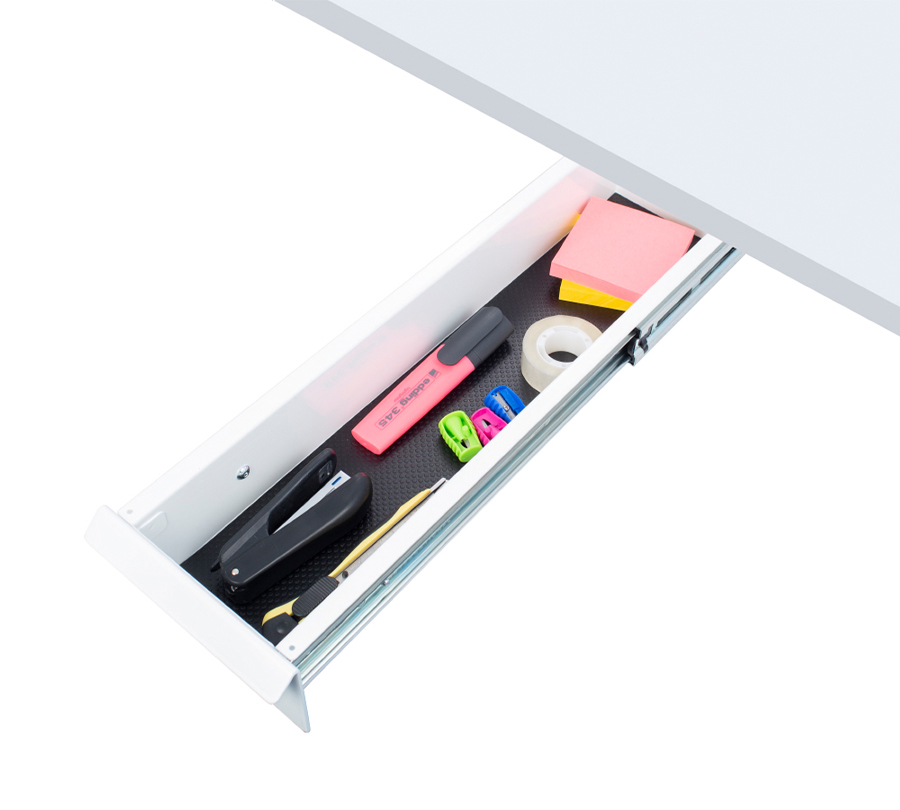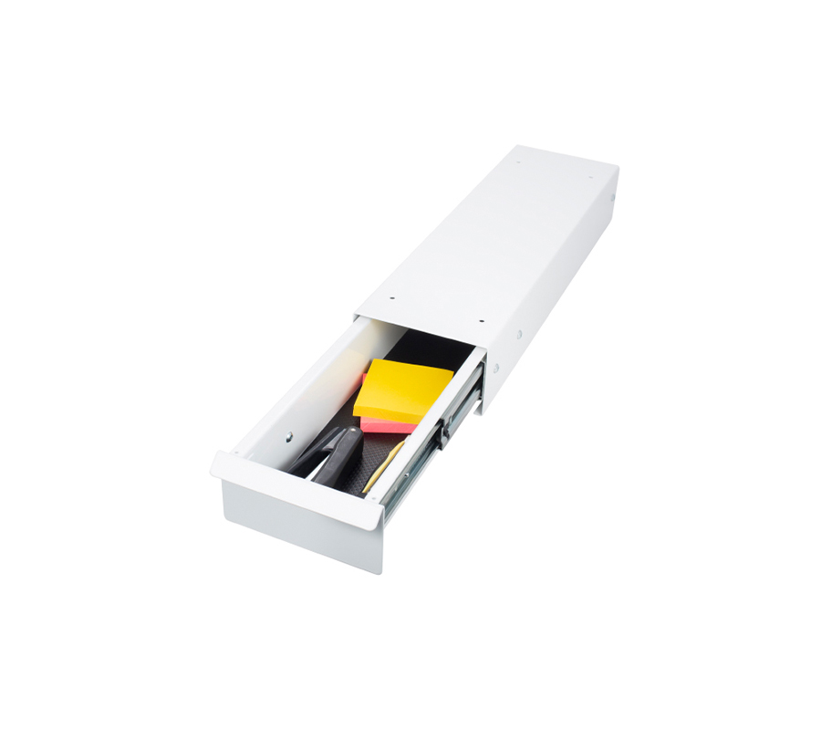 This practical storage drawer allows to free your workspace by moving office accessories under the desktop. Ergonomic design makes it almost unnoticeable.