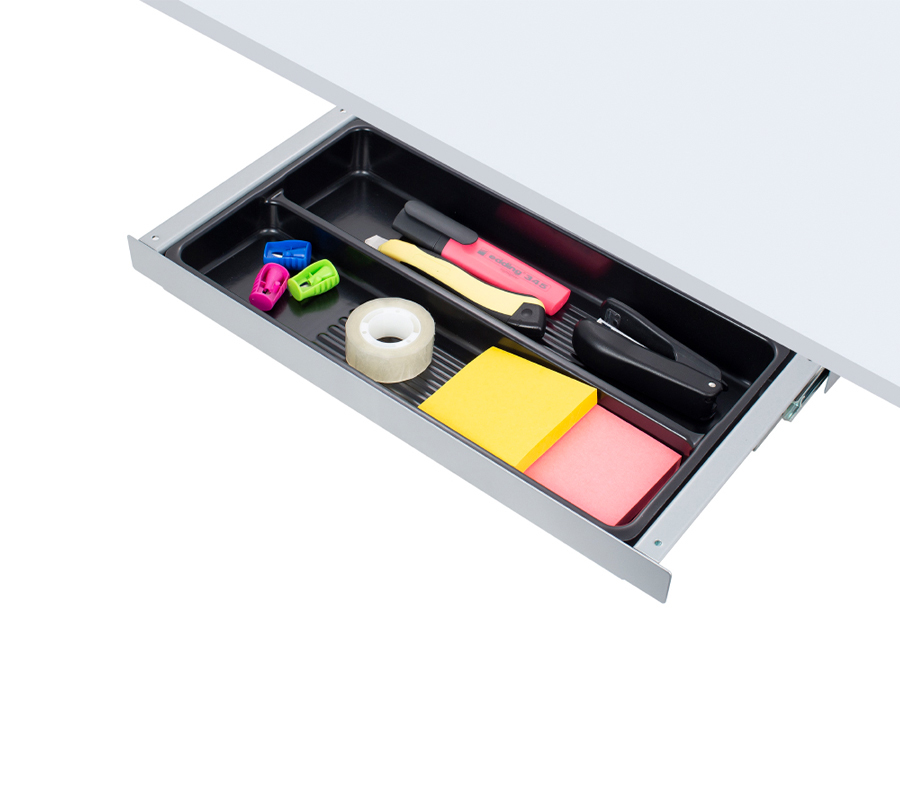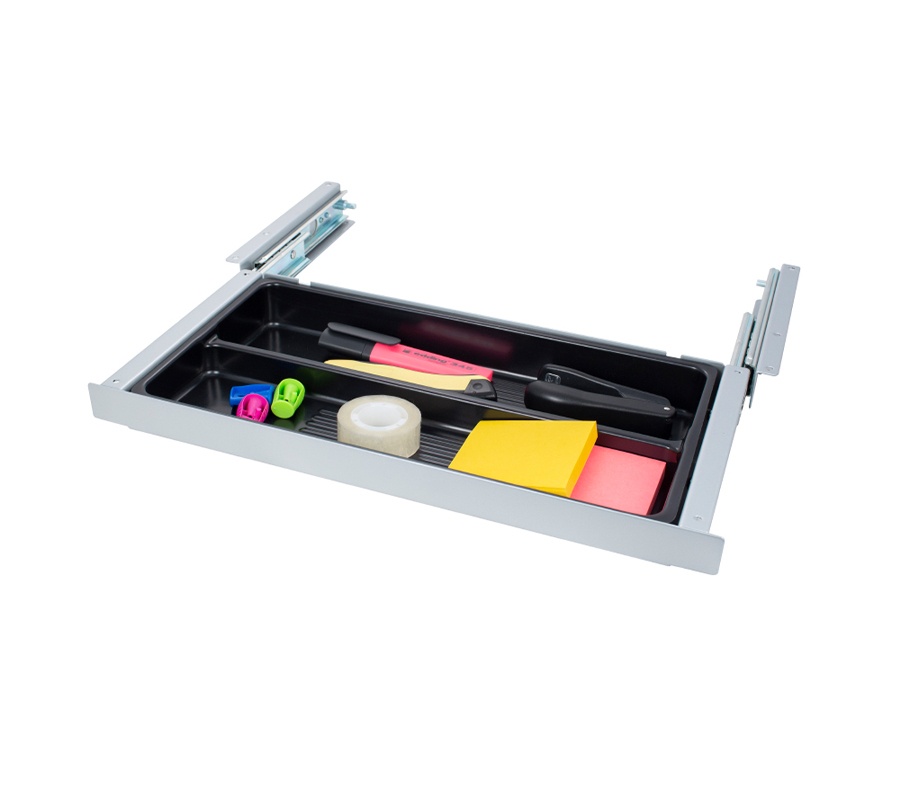 This practical storage drawer allows to free your workspace by moving office accessories under the desktop. Ergonomic design makes it almost unnoticeable.