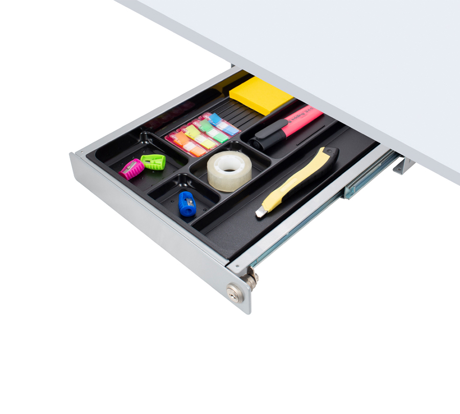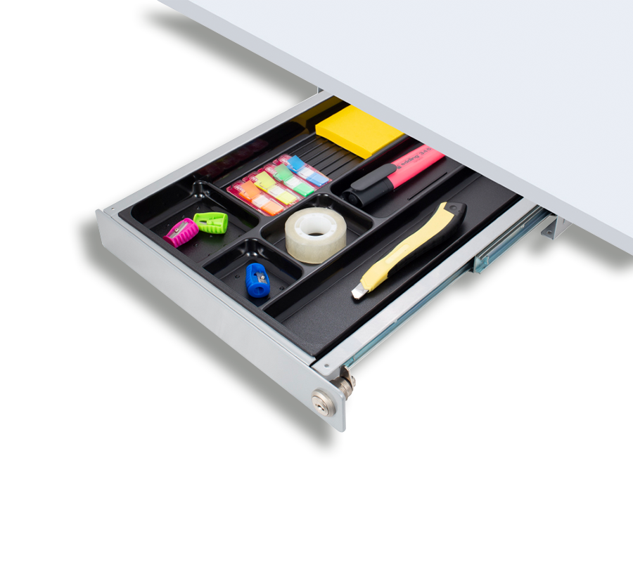 This practical storage drawer allows to free your workspace by moving office accessories under the desktop. Ergonomic design makes it almost unnoticeable.
