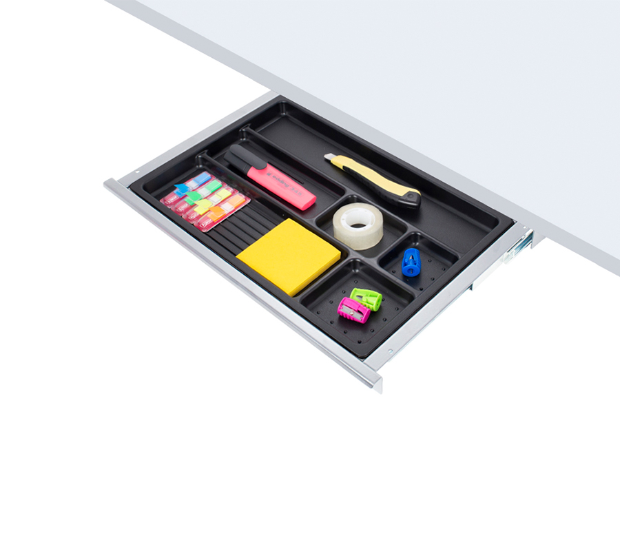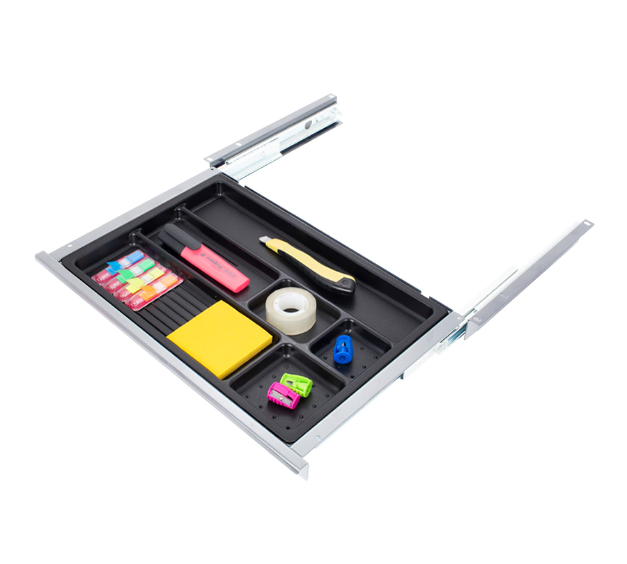 This practical storage drawer allows to free your workspace by moving office accessories under the desktop. Ergonomic design makes it almost unnoticeable.