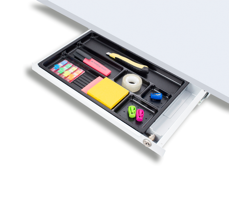 This practical storage drawer allows to free your workspace by moving office accessories under the desktop. Ergonomic design makes it almost unnoticeable.
