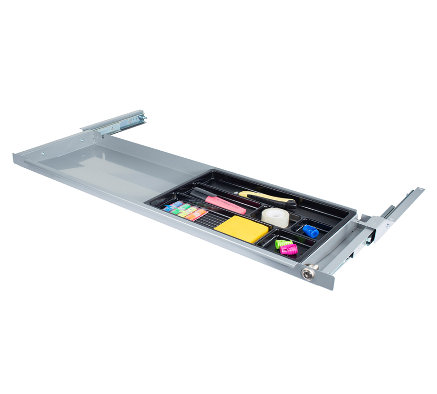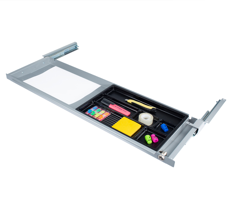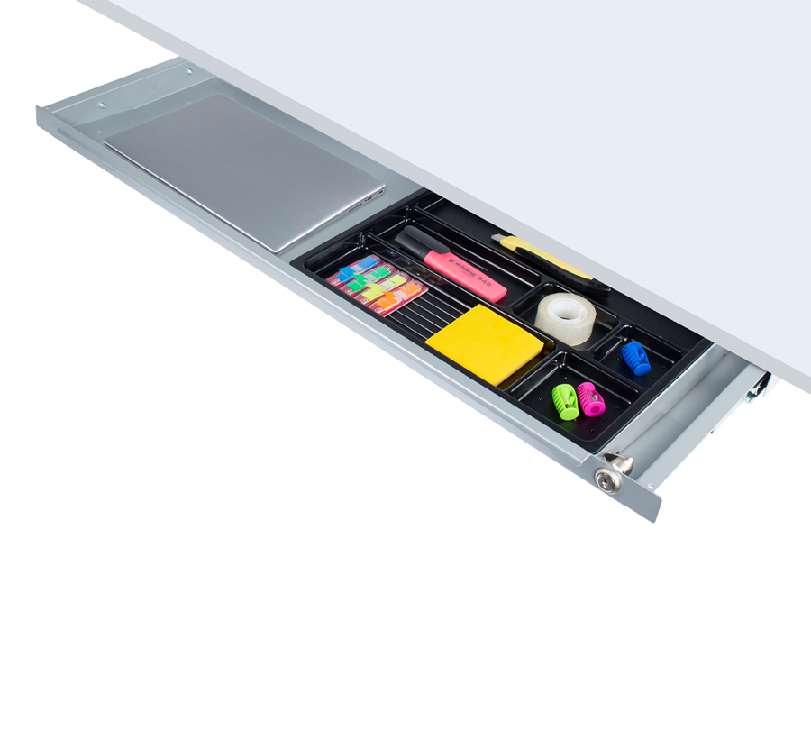 This practical storage drawer allows to free your workspace by moving office accessories under the desktop. Wide tray allows to keep laptops and A4 sheets.