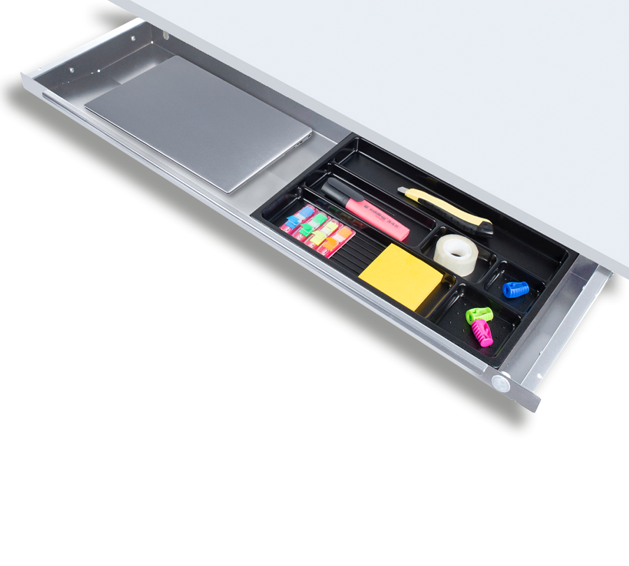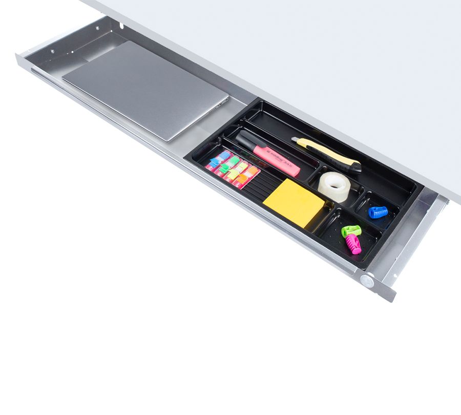 This practical storage drawer allows to free your workspace by moving office accessories under the desktop. Wide tray allows to keep laptops and A4 sheets.