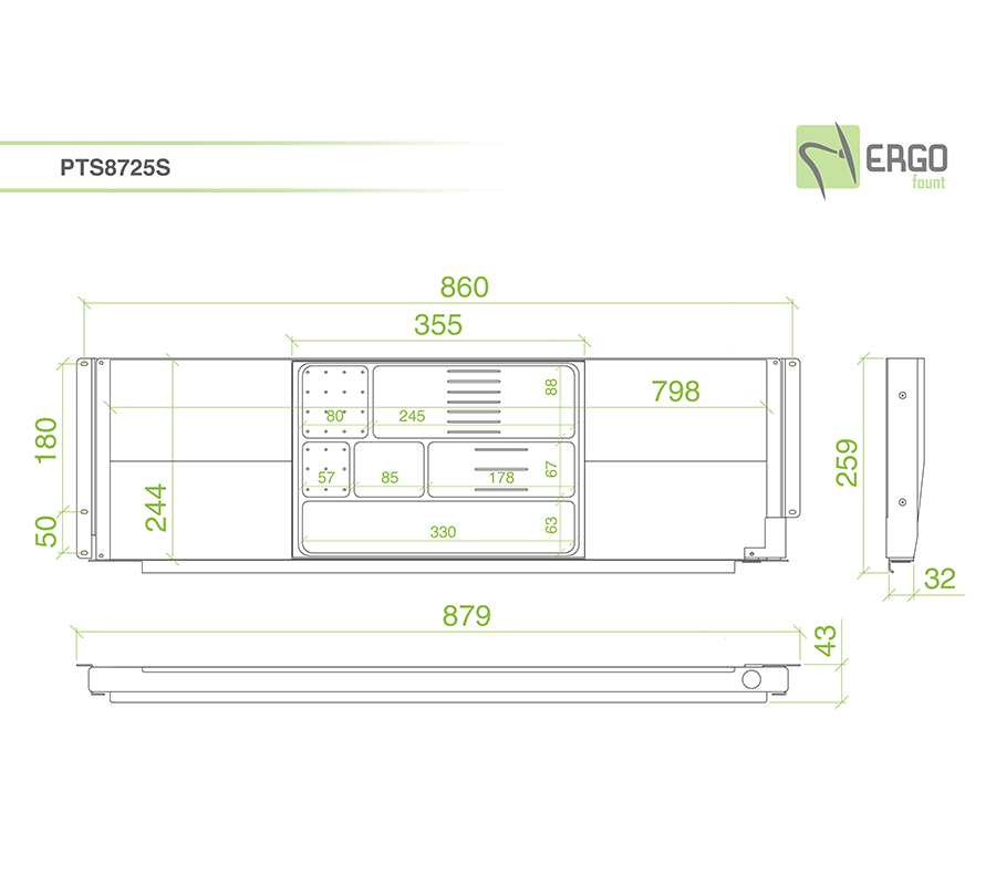 - Dimensions: 879x259x32 mm