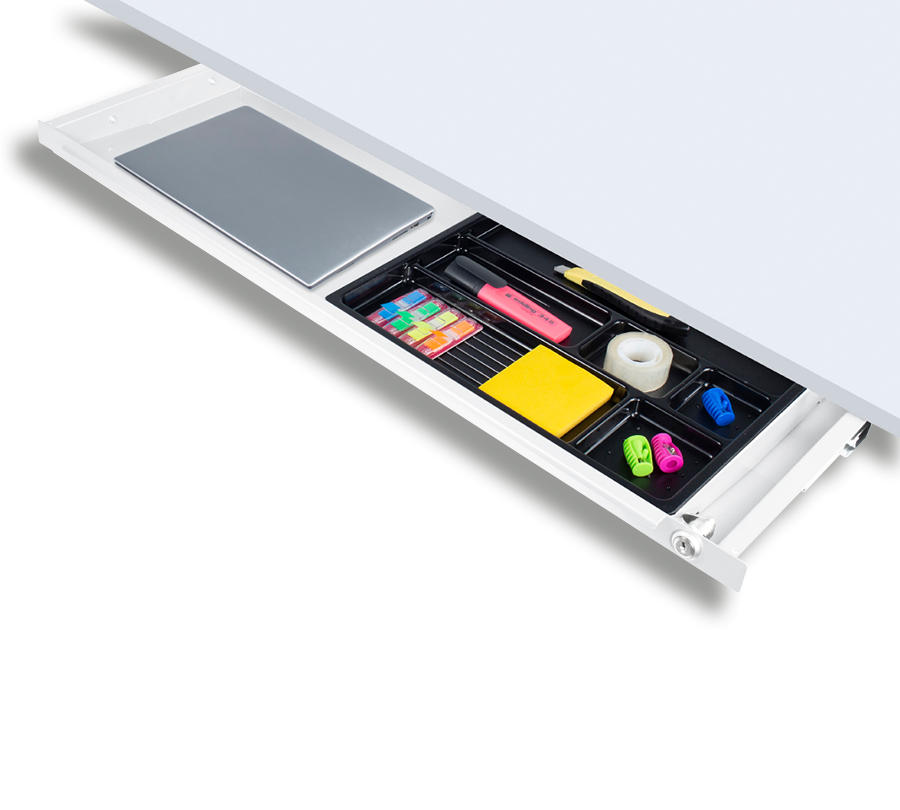 This practical storage drawer allows to free your workspace by moving office accessories under the desktop. Wide tray allows to keep laptops and A4 sheets.