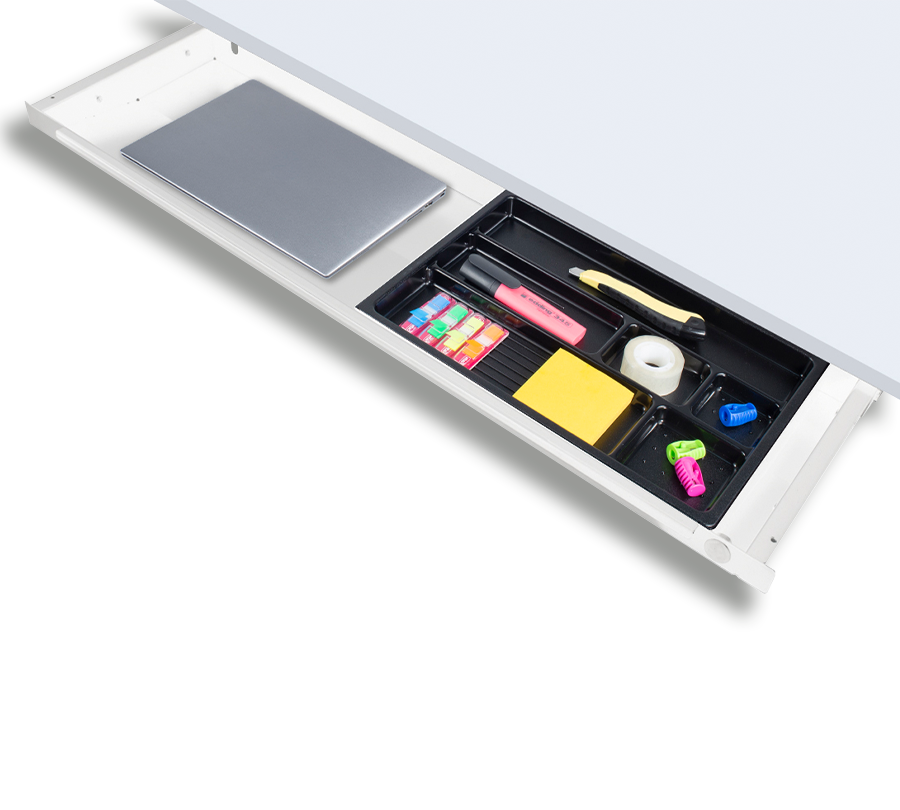 This practical storage drawer allows to free your workspace by moving office accessories under the desktop. Wide tray allows to keep laptops and A4 sheets.