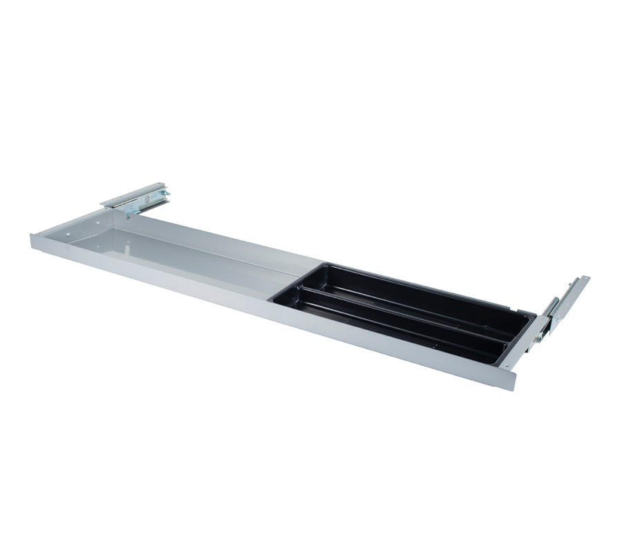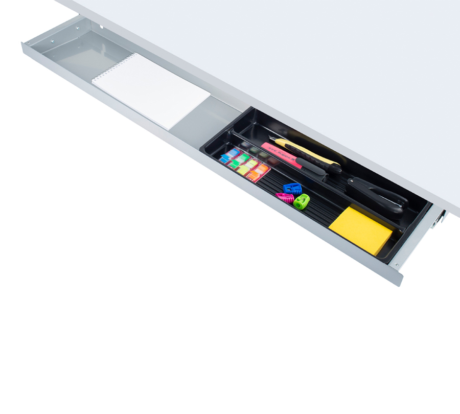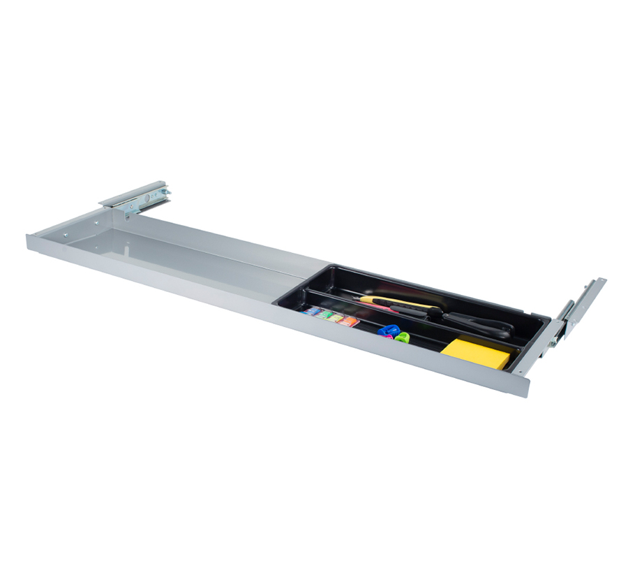 This practical storage drawer allows to free your workspace by moving office accessories under the desktop. Ergonomic design makes it almost unnoticeable.