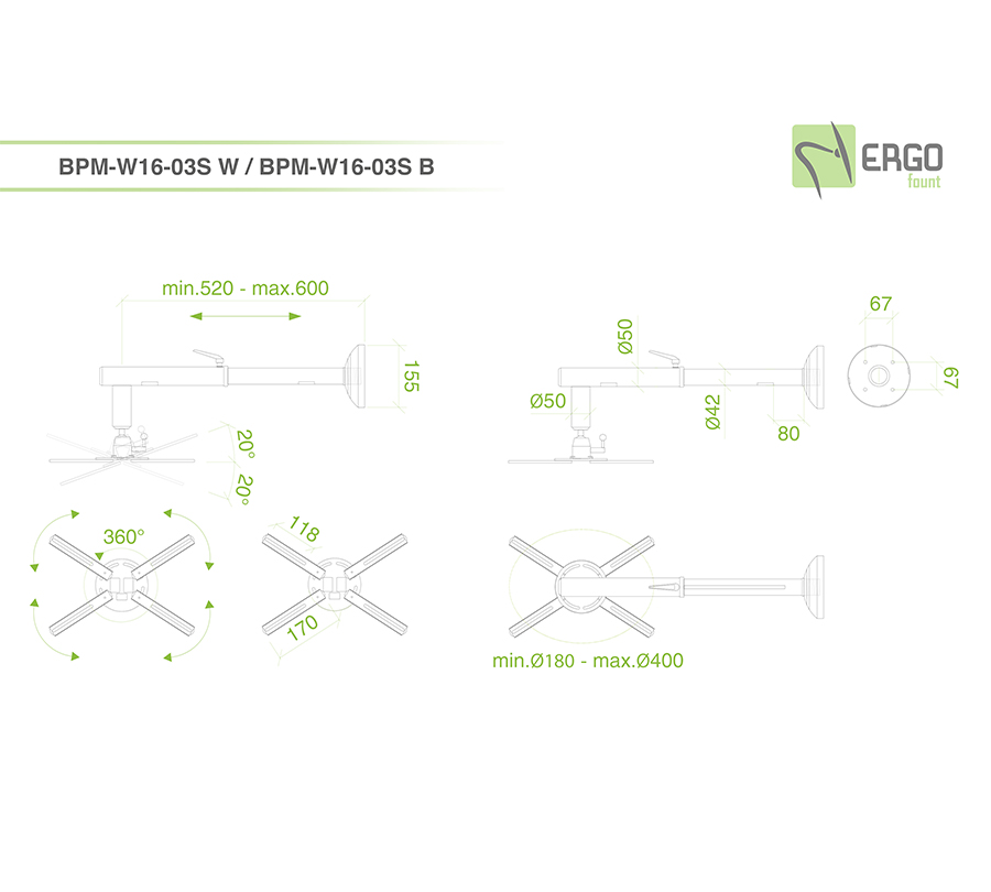 BPM-W16-03S W wall projector is a perfect solution for short focused projectors on a telescopic bar. This mount is perfectly suited for the use with interactive whiteboards.