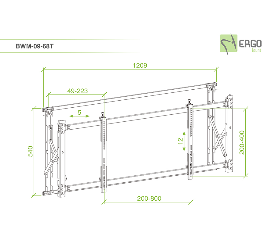 BWM-09-68T mount is designed in a way allowing to create video wall of any configuration. Pop-Out mechanism provides easy access to the backside of the screen facilitating the maintenance process.