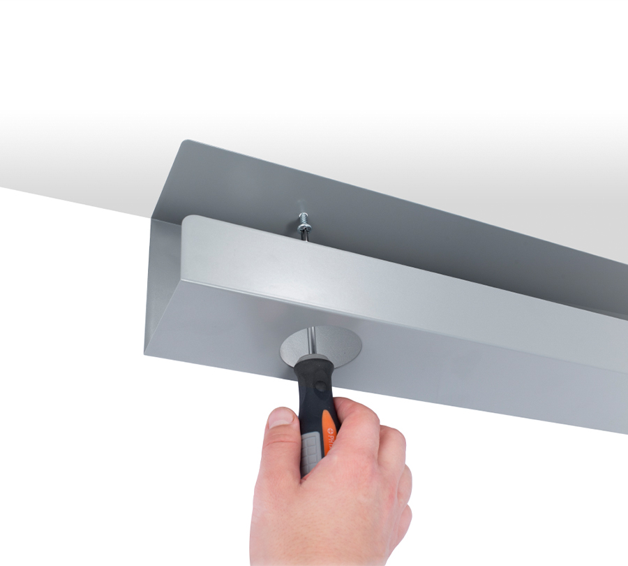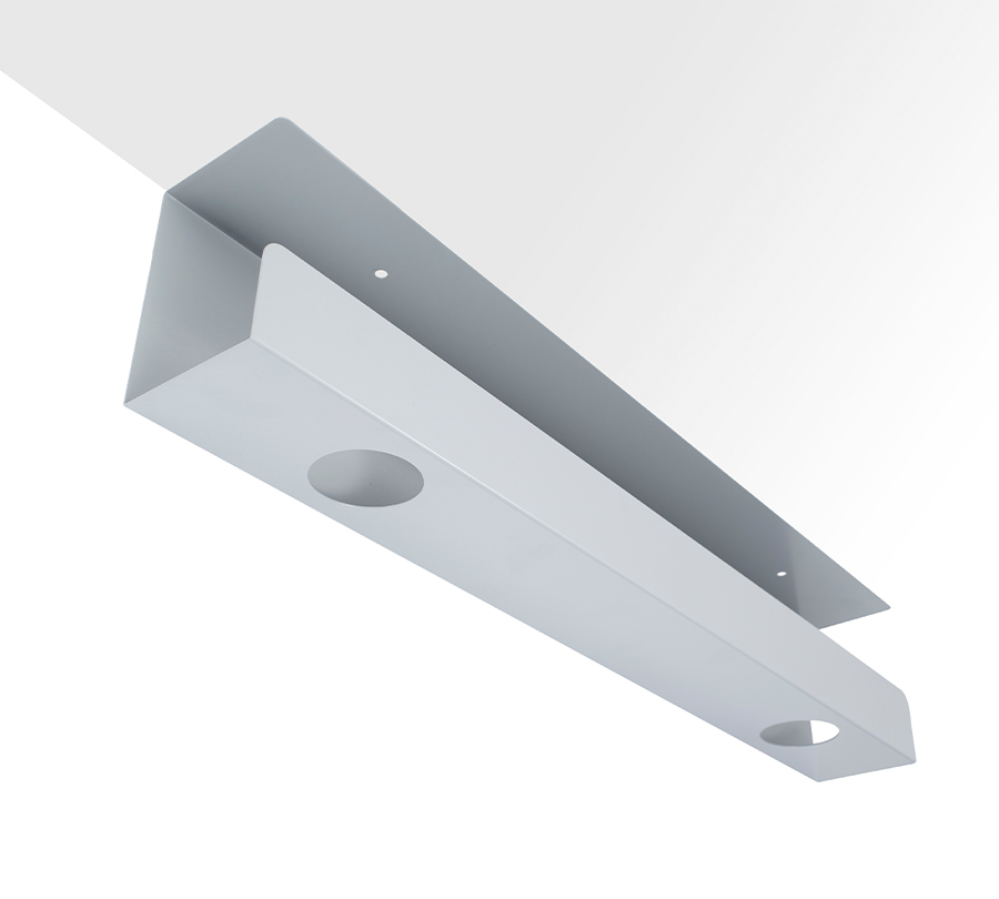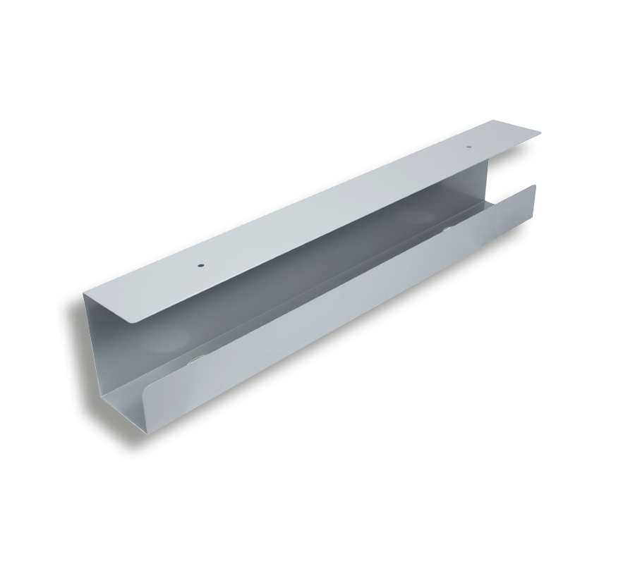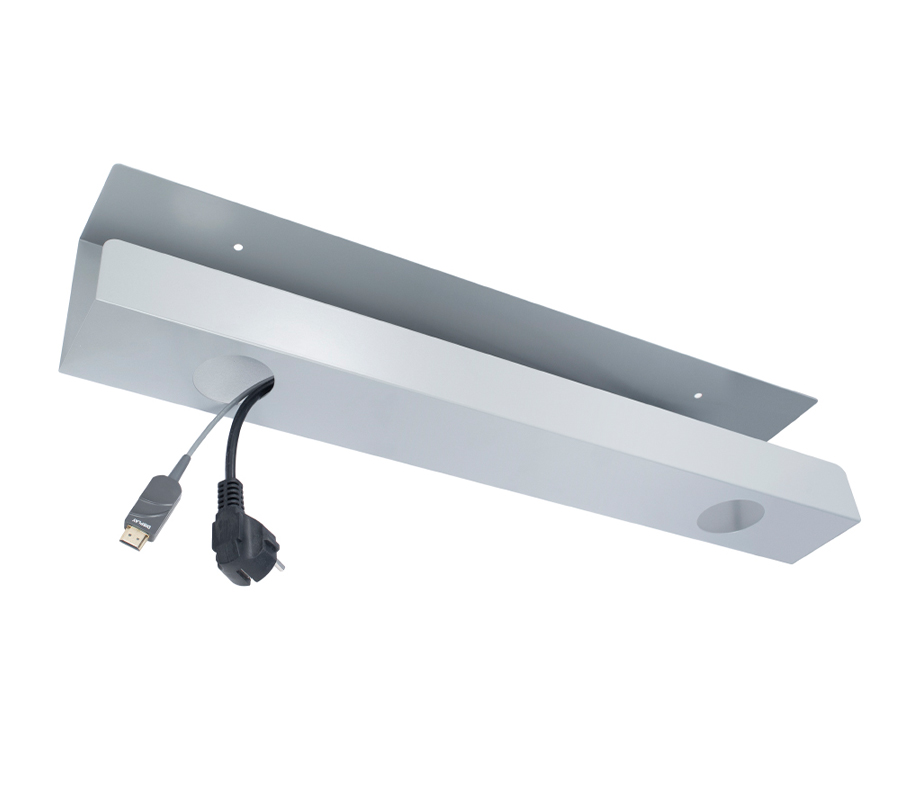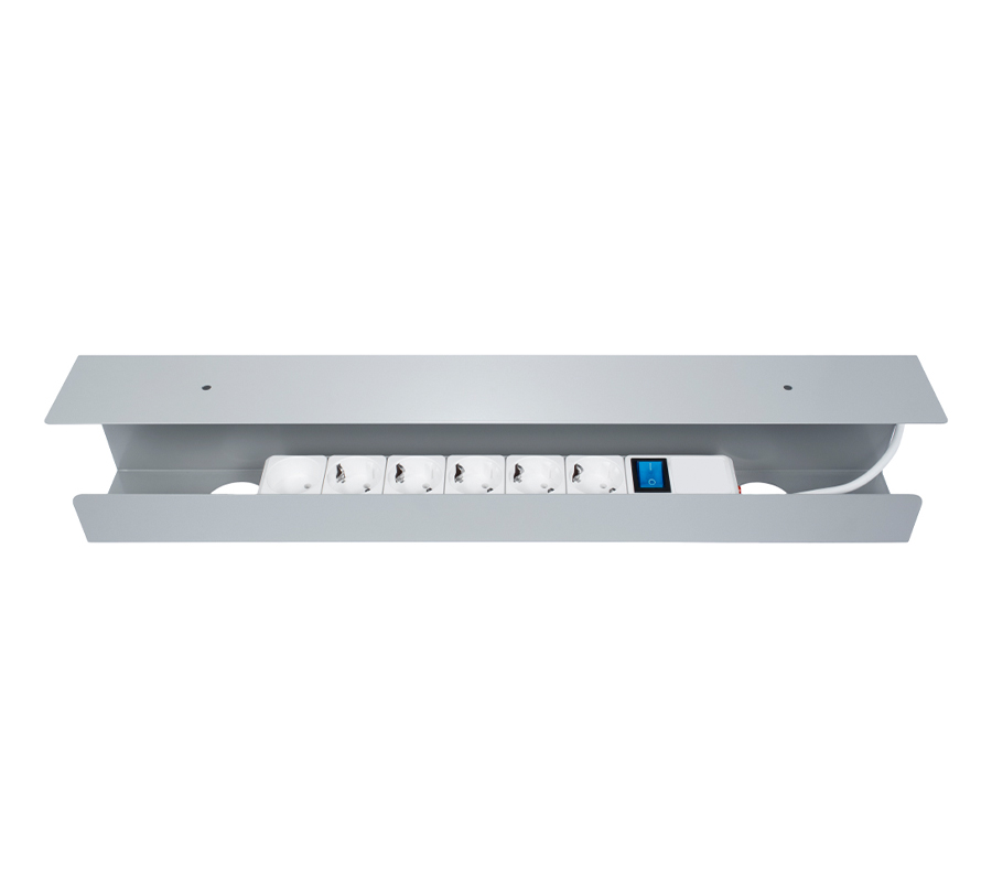 Metalowy kanał kablowy CS-60G pozwala na uporządkowanie dowolnej liczby przewodów pod blatem. Zaprojektowany, aby zmieścić niewielką listwę.