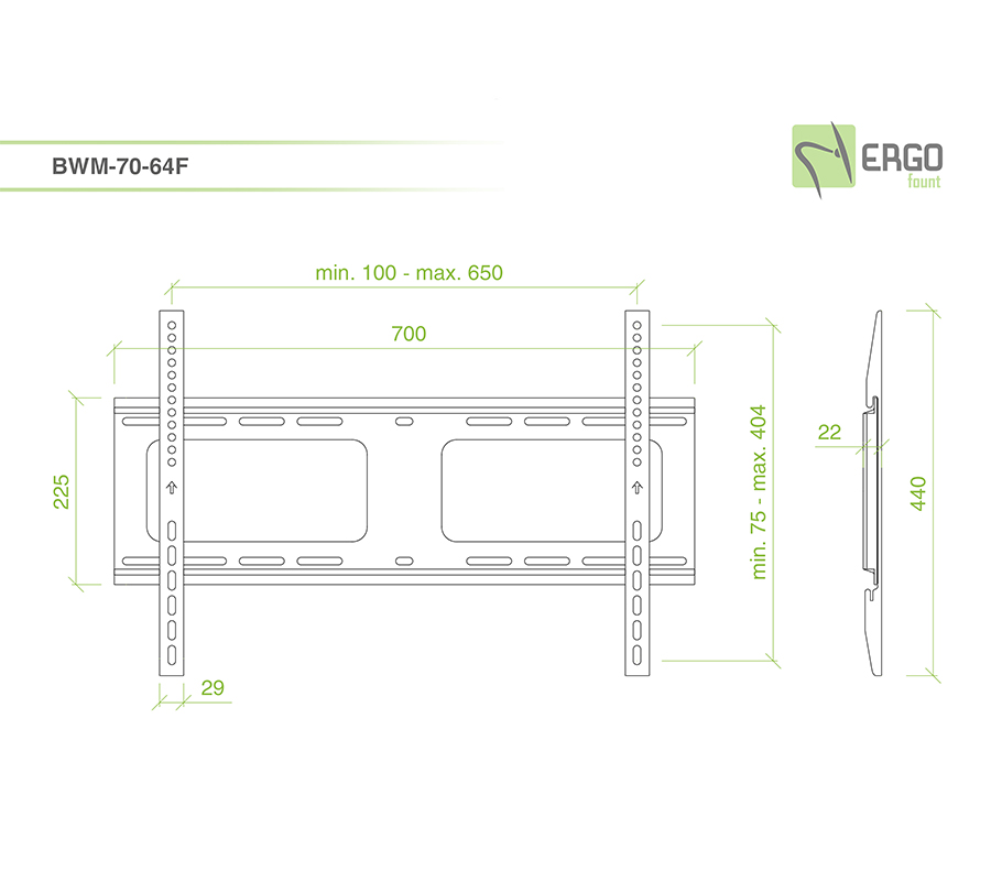 Uchwyt BWM-70-64F jest przeznaczony do montażu telewizora na dowolnej ścianie. Jest kompatybilny z większością standardowych VESA. Cienki profil czyni go praktycznie niezauważalnym.