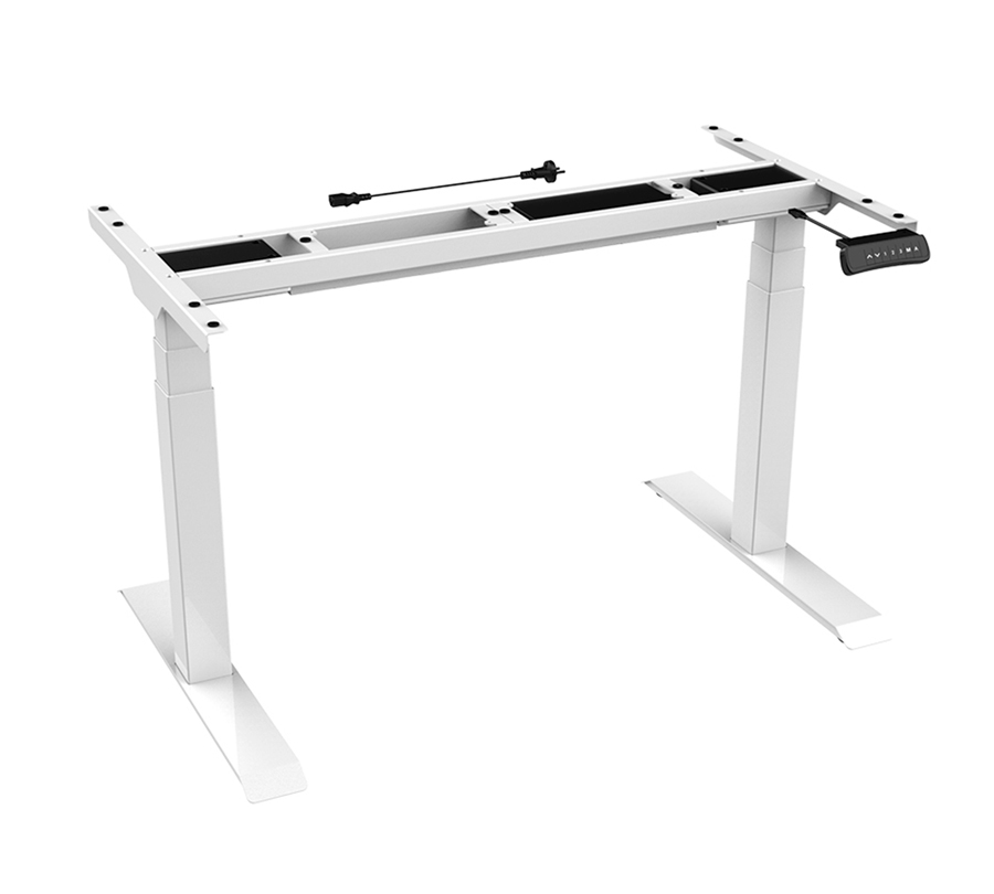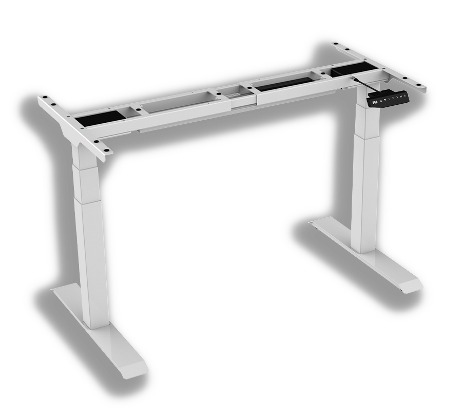 Zmotoryzowana podstawa biurka stojącego. Teleskopowa forma oszczędza czas montażu. Regulacja wysokości: 580–1230 mm. Sterowanie: panel przycisków. Rekomendowane wymiary blatu: długość 1200-2000 mm, szerokość 600-800 mm. Ciche silniczki, poziom hałasu poniżej 50 dB. Liczba stopni: 3. Prędkość podnoszenia: 38 mm/s. Napięcie: 100–240 V. Nośność: 125 kg. Kolor: biały.