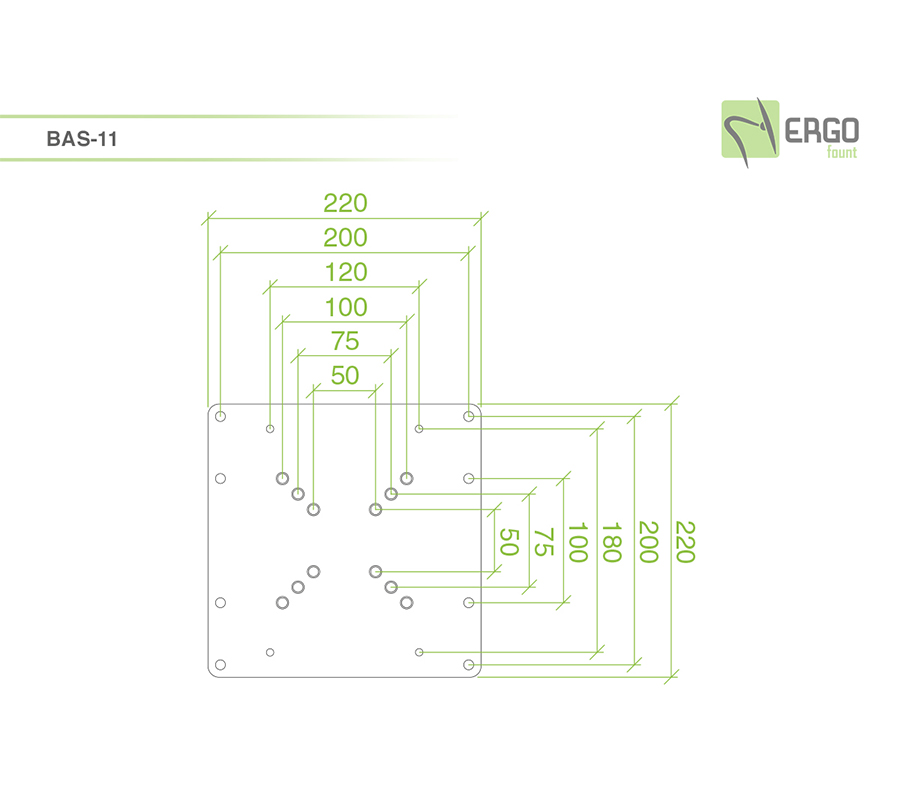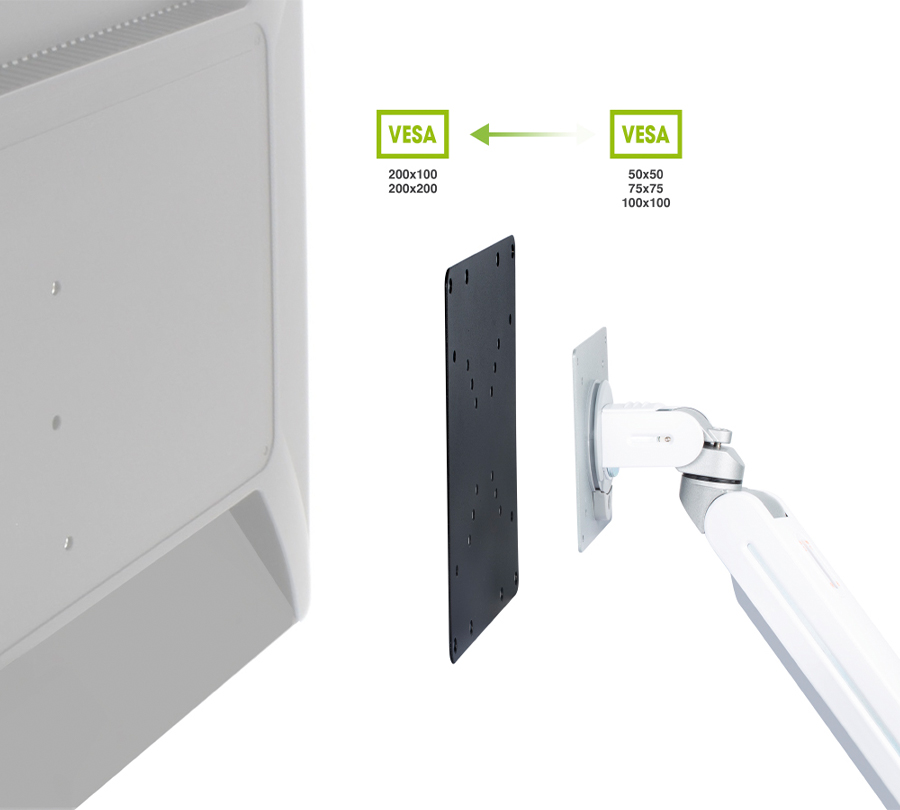 BAS-11 pozwala na montaż nawet największych monitorów na standardowych mocowaniach. Za pomocą tego adaptera można zamontować monitory z VESA 200x200 i 200x100 na uchwytach 50x50, 75x75 i 100x100.
