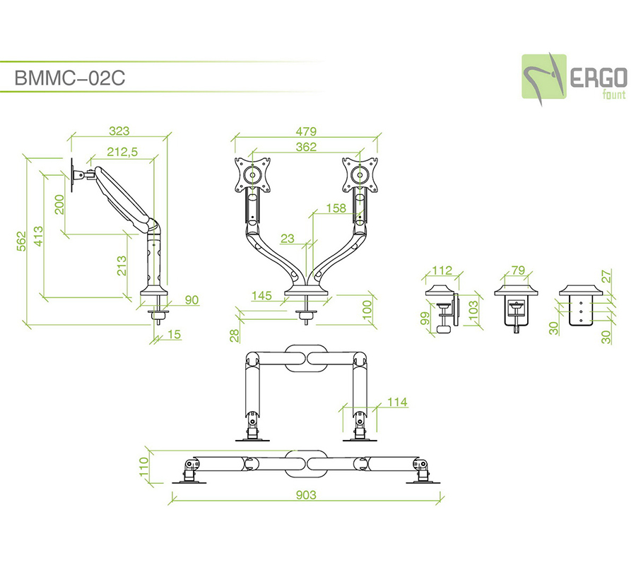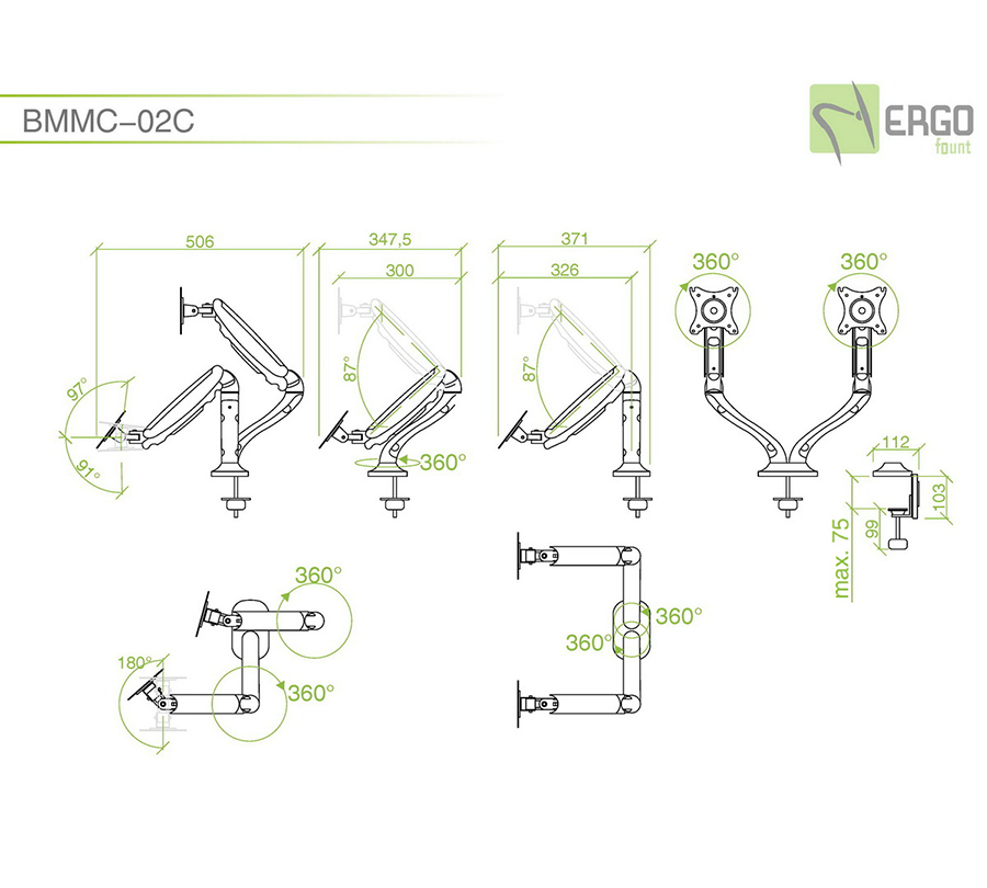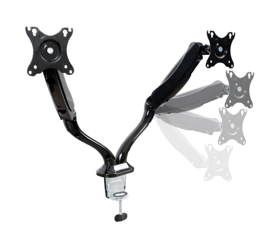 BMMC-02C to ergonomiczny uchwyt do monitora, który pozwala idealnie ustawić dwa ekrany. Wbudowany mechanizm sprężyny gazowej umożliwia łatwą regulację wysokości i kąta nachylenia monitorów.