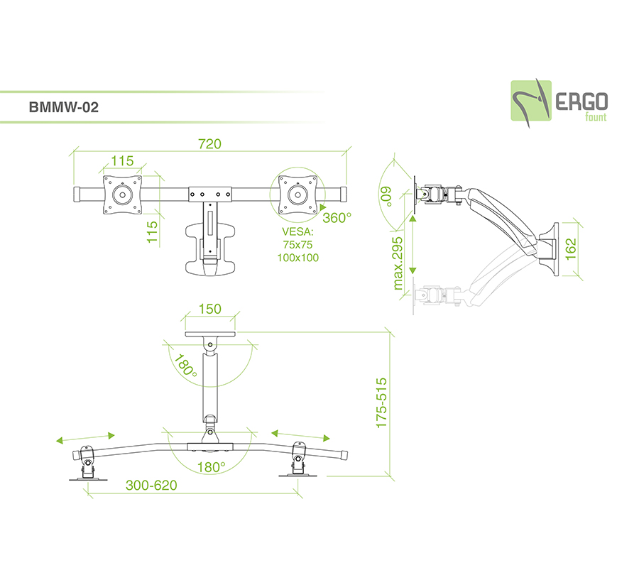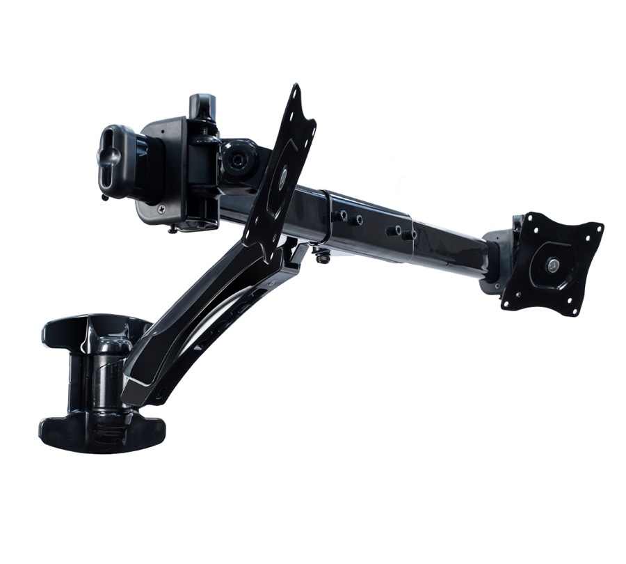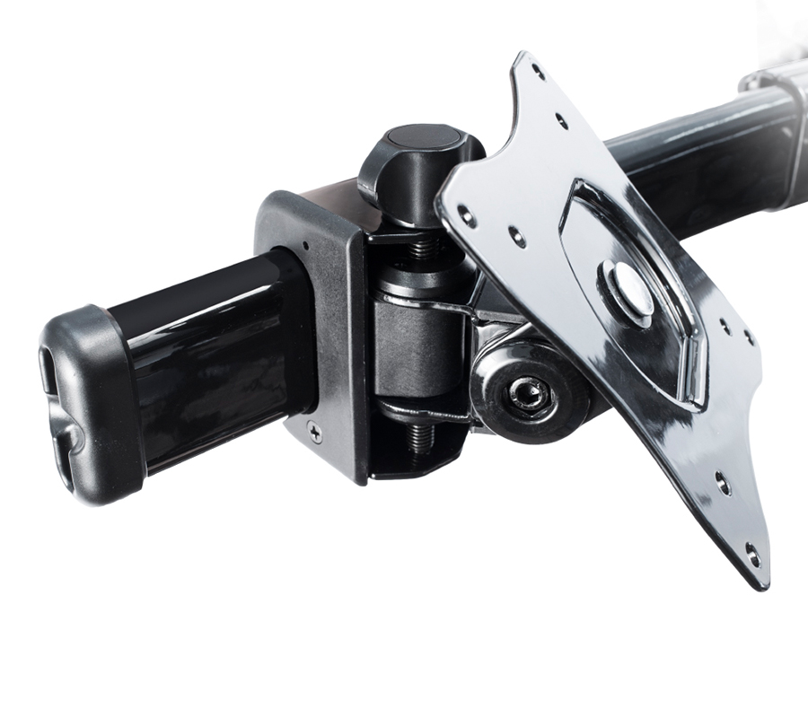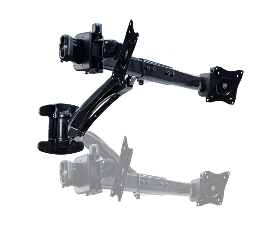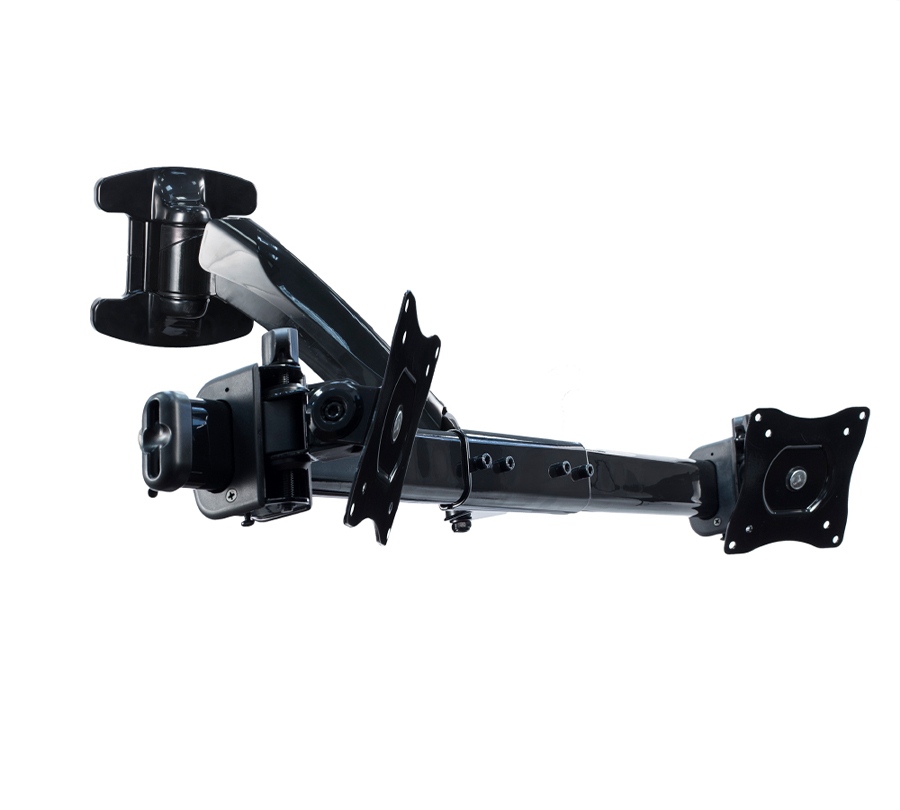 Uchwyt BMMW-02 pozwala na montaż dwóch monitorów o przekątnej 13''- 27'' i wadze 9 kg. Można go zamontować na dowolnym poziomie, regulując kąt i wysokość ekranu.