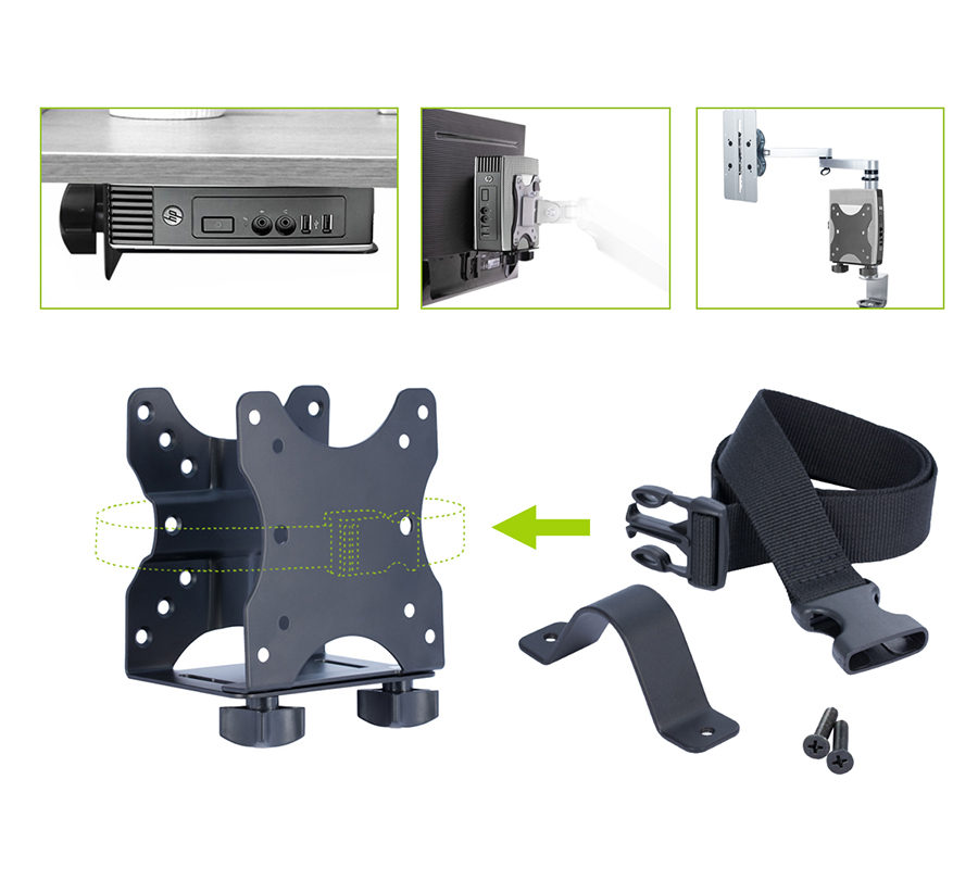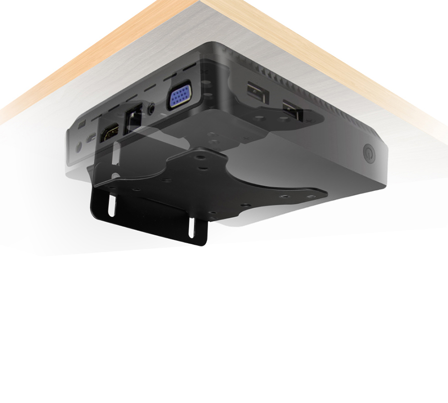 Uchwyt BPCH-01 umożliwia montaż mini PC w dowolnym miejscu. Można go umieścić pod blatem, na blacie lub nawet między monitorem a uchwytem VESA.