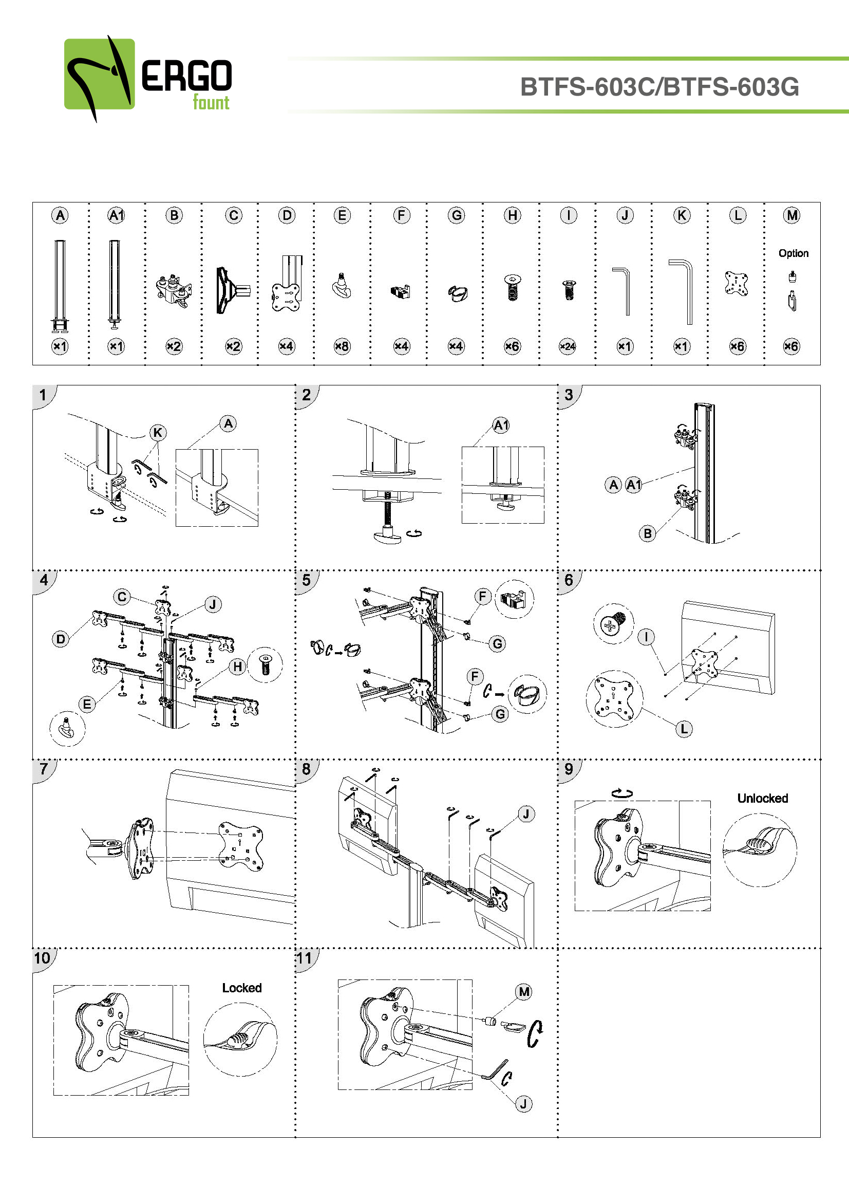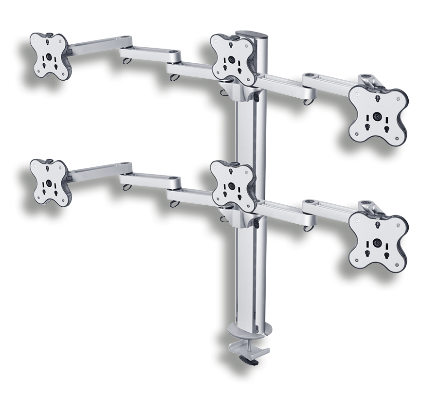 Uchwyt BTFS-603G pozwala na stworzenie kompaktowej ściany wideo z 6 monitorów o wadze do 12 kg i przekątnej 24'' każdy. Elastyczne, 2-stopniowe ramię pozwoli na idealne ustawienie ekranów, a wbudowany kanał na kabl