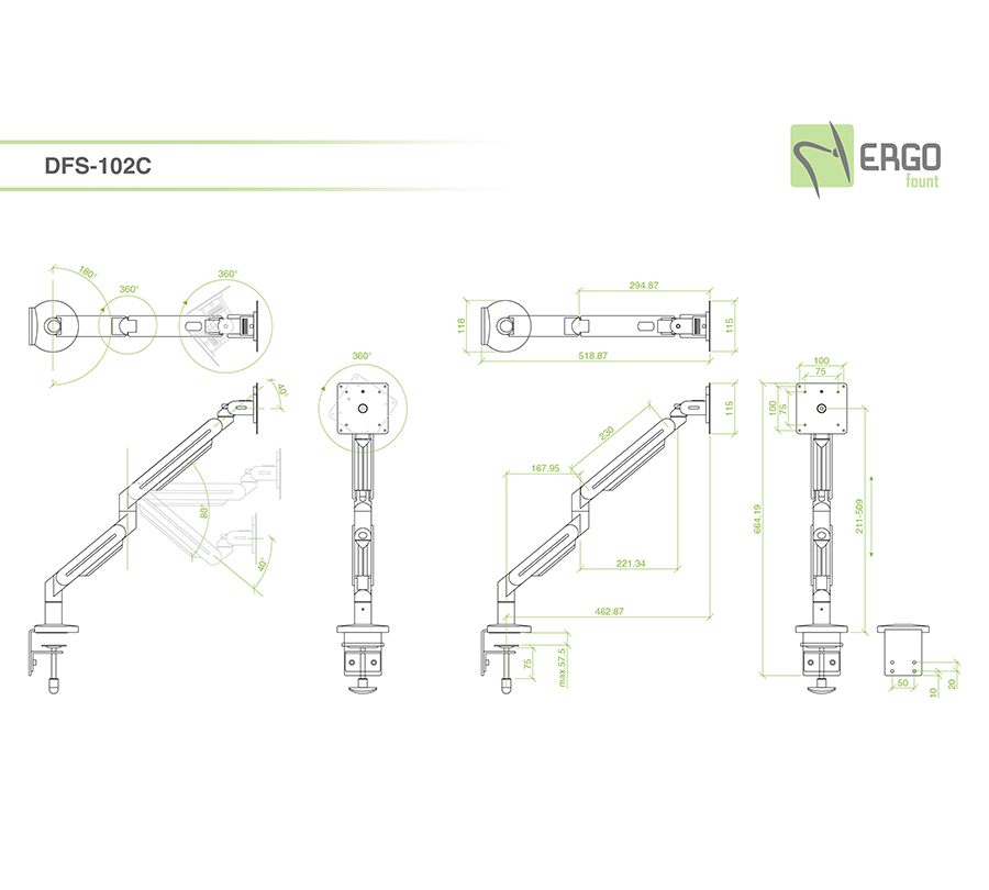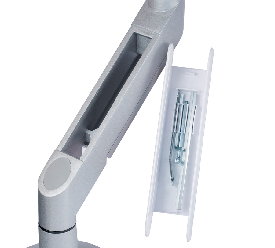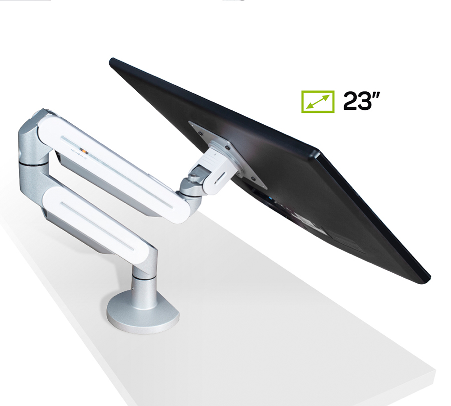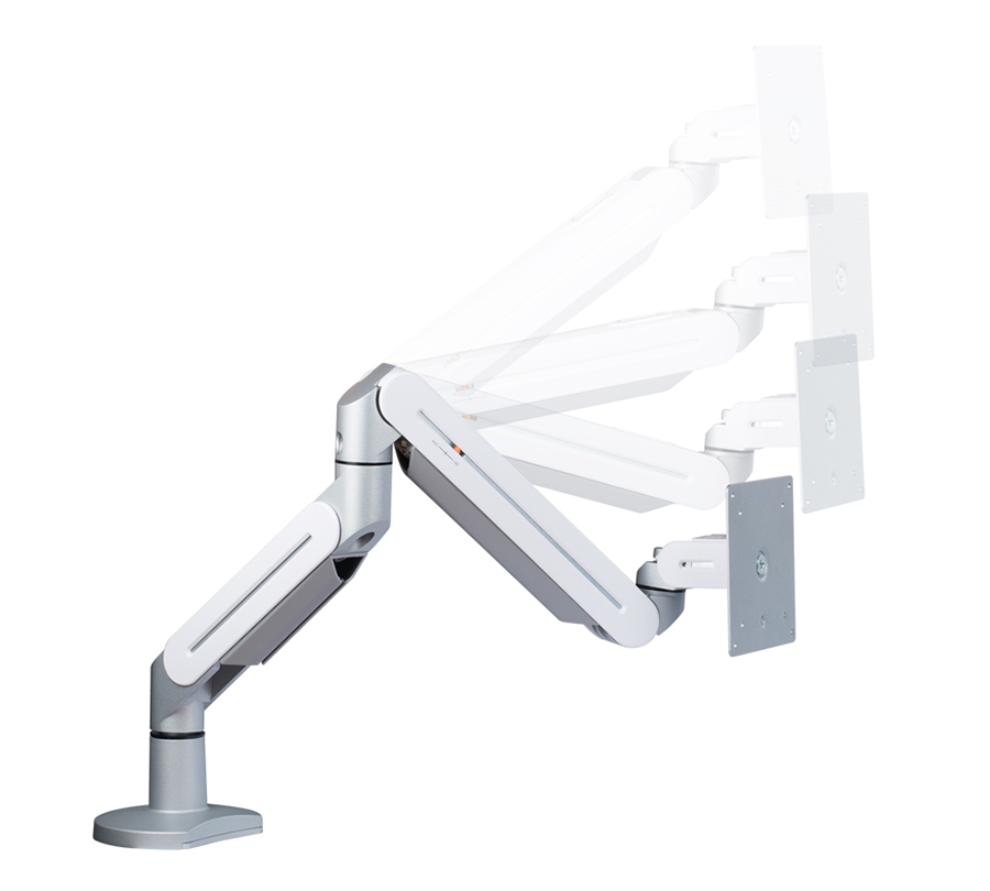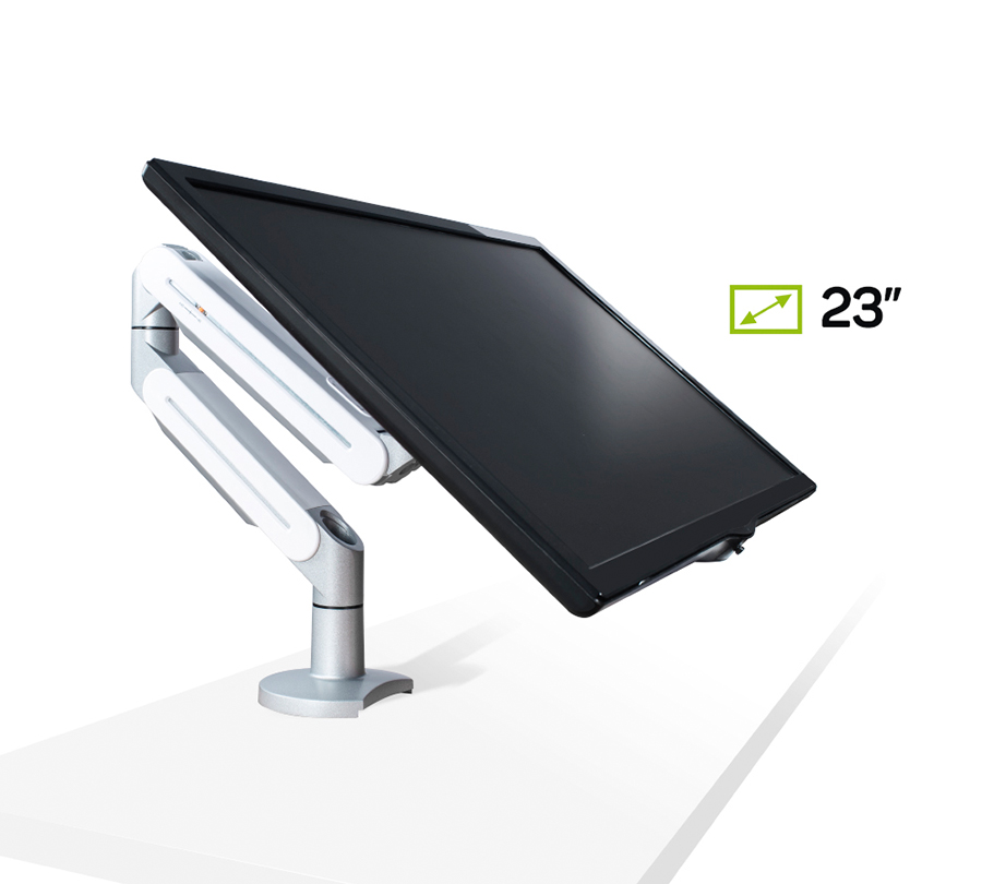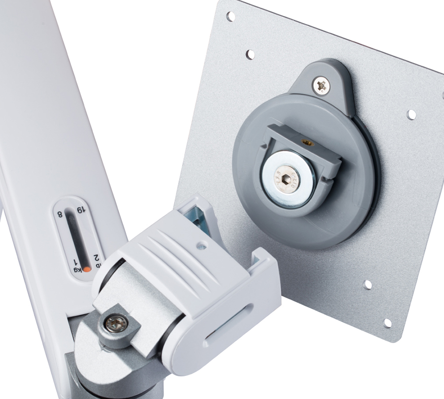 Uchwyt DFS-102C utrzyma monitor o wadze do 8,5 kg i przekątnej do 27''. Jego elastyczna konstrukcja pozwala na idealne ustawienie monitora, a system antykradzieżowy zapewnia bezpieczeństwo.