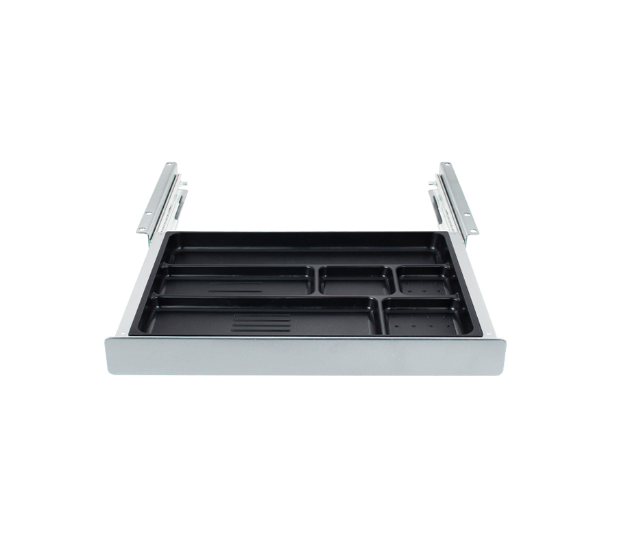Ta praktyczna szuflada do przechowywania pozwala zwolnić miejsce do pracy, przenosząc akcesoria biurowe pod blat. Ergonomiczny design czyni ją praktycznie niezauważalną.