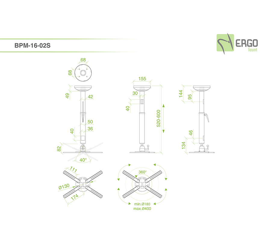 Uchwyt sufitowy BPM-16-02S B może utrzymać nawet najcięższe projektory. Jego elastyczne mechanizmy pozwalają na regulację wysokości i kąta projektora, zapewniając doskonałą jakość obrazu. Wspornik może pasować do