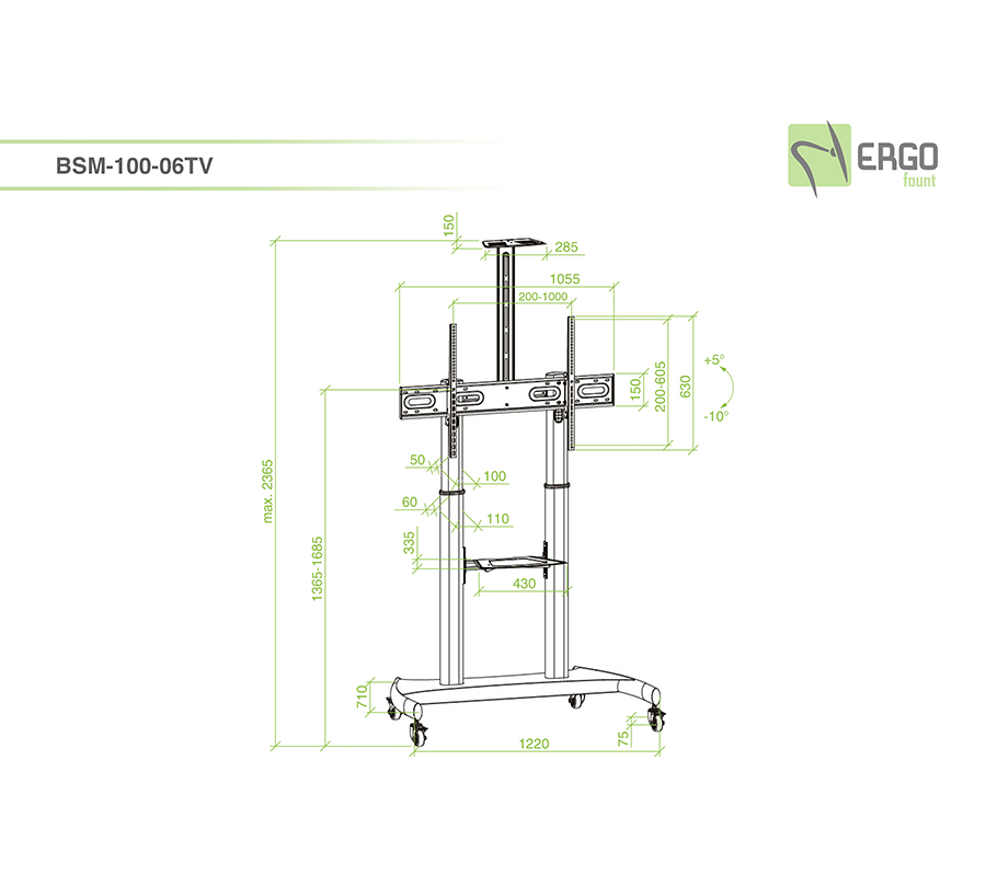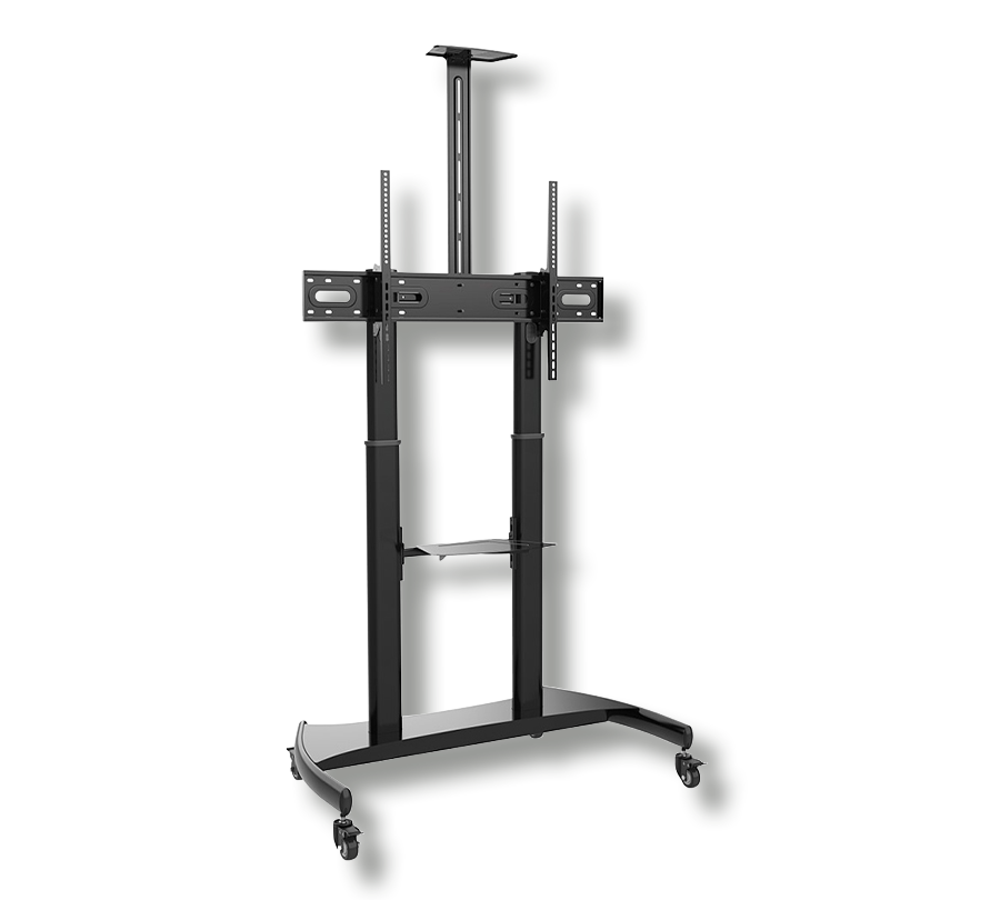 Stojak BSM-100-06TV zapewni mobilność nawet najcięższym ekranom. Ten uchwyt to idealne rozwiązanie na wystawy. Możesz precyzyjnie wyregulować pozycję ekranu i umieścić cały niezbędny sprzęt AV na wbudowanej półce. Maksymalne obciążenie półki: 5 kg