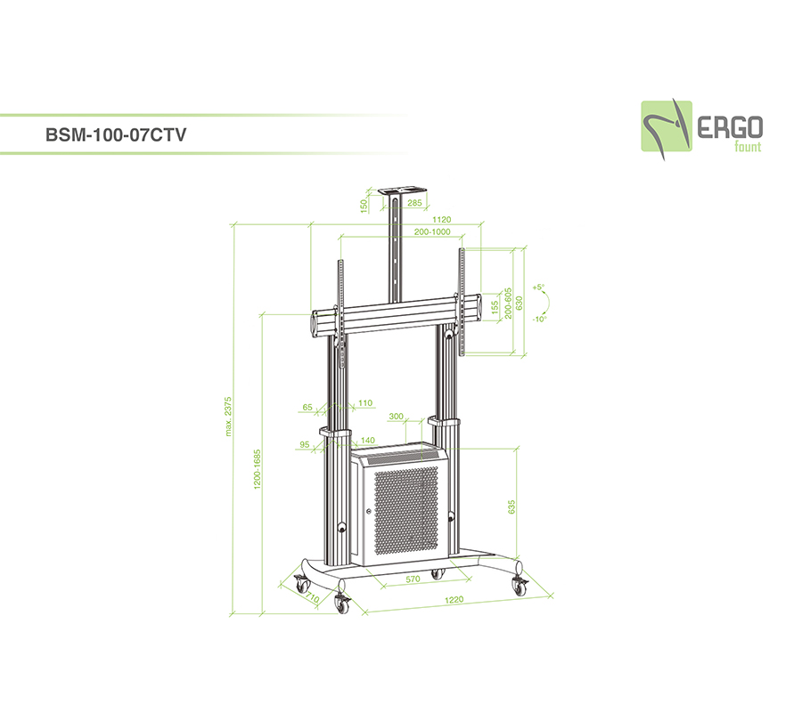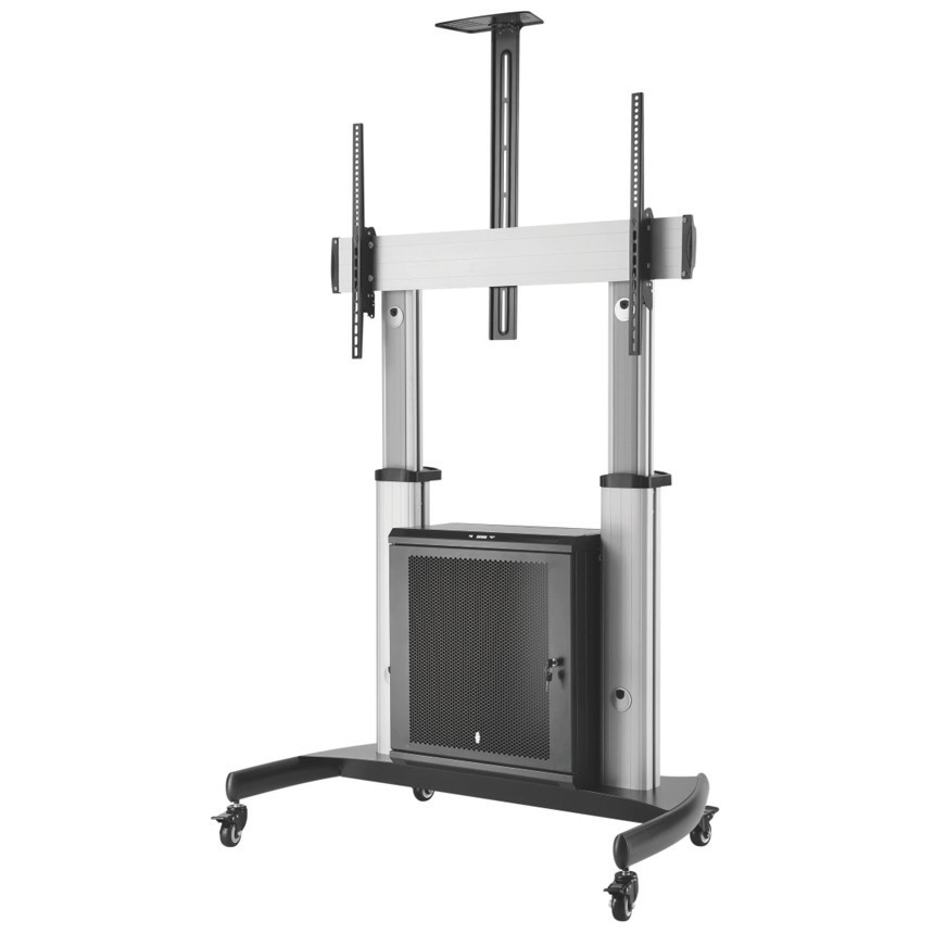 Stojak BSM-100-07CTV zapewni mobilność nawet najcięższym ekranom. Ten uchwyt to idealne rozwiązanie na wystawy. Możesz precyzyjnie wyregulować pozycję ekranu i umieścić cały niezbędny sprzęt AV na wbudowanej półce. Maksymalne obciążenie półki: 5 kg